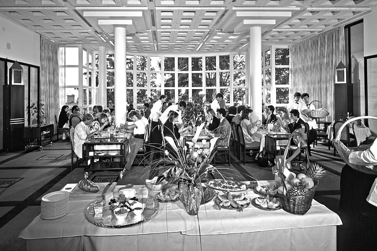 Auch in den 80er-Jahren wurde Wert auf einen gepflegten Service gelegt. Der lässt sich am besten mit realen Gästen üben.