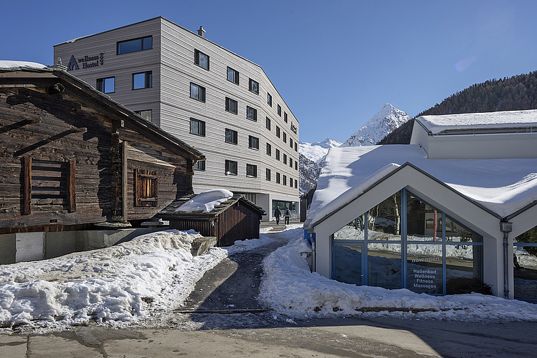 Blick auf die Schweizer Jugendherberge «Wellnesshostel 4000» in Saas-Fee.
