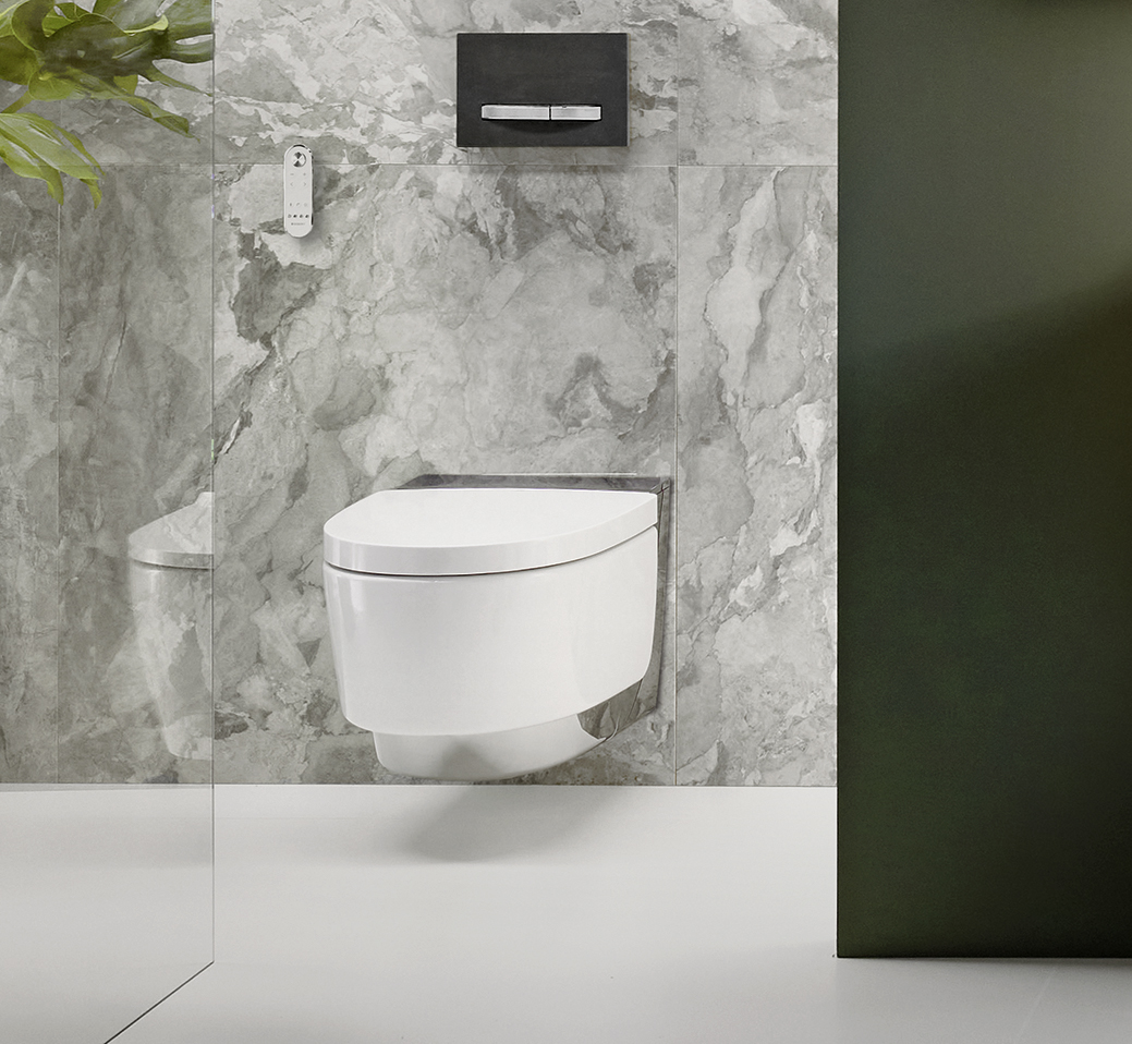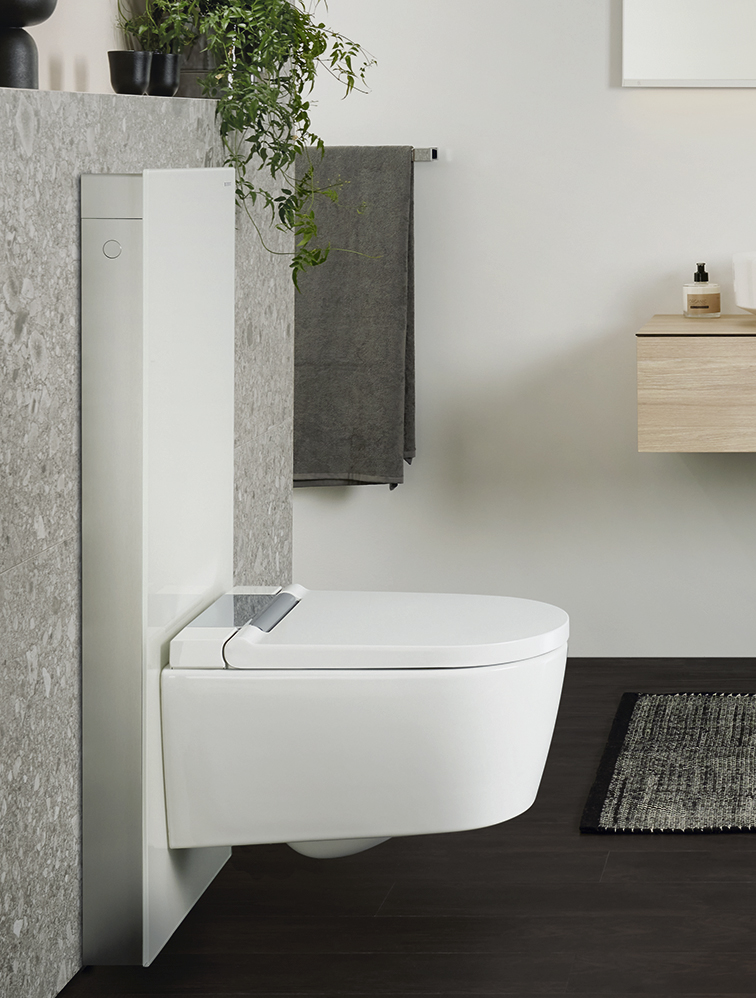 Tous les WCdouches de Geberit sont raffinés jusque dans les moindres détails: même le nettoyage et l’entretien réguliers sont simples et permettent de gagner un temps précieux. Grâce à la fonction Quick Release, le couvercle de WC peut être retiré en un tournemain pour un nettoyage minutieux, rapide et facile, empêchant ainsi la formation de dépôts tenaces aux points de fixation. La céramique des WC est conçue de façon asymétrique à l’intérieur et, grâce à la puissante technologie de rinçage spécialement développée, elle assure un rinçage complet et silencieux. Pour encore plus d’hygiène et de confort lors du nettoyage des WC, la céramique est recouverte d’un émail spécial résistant aux rayures, permettant à la saleté et l’eau de rinçage de glisser sur la surface. Et il existe encore d’autres détails pratiques: la buse de la douchette se nettoie d’elle-même avant et après chaque utilisation et reste ainsi toujours hygiéniquement propre. Le WCdouche songe également au détartrage automatique en indiquant le moment propice au détartrage tout en tenant compte de la dureté de l’eau.