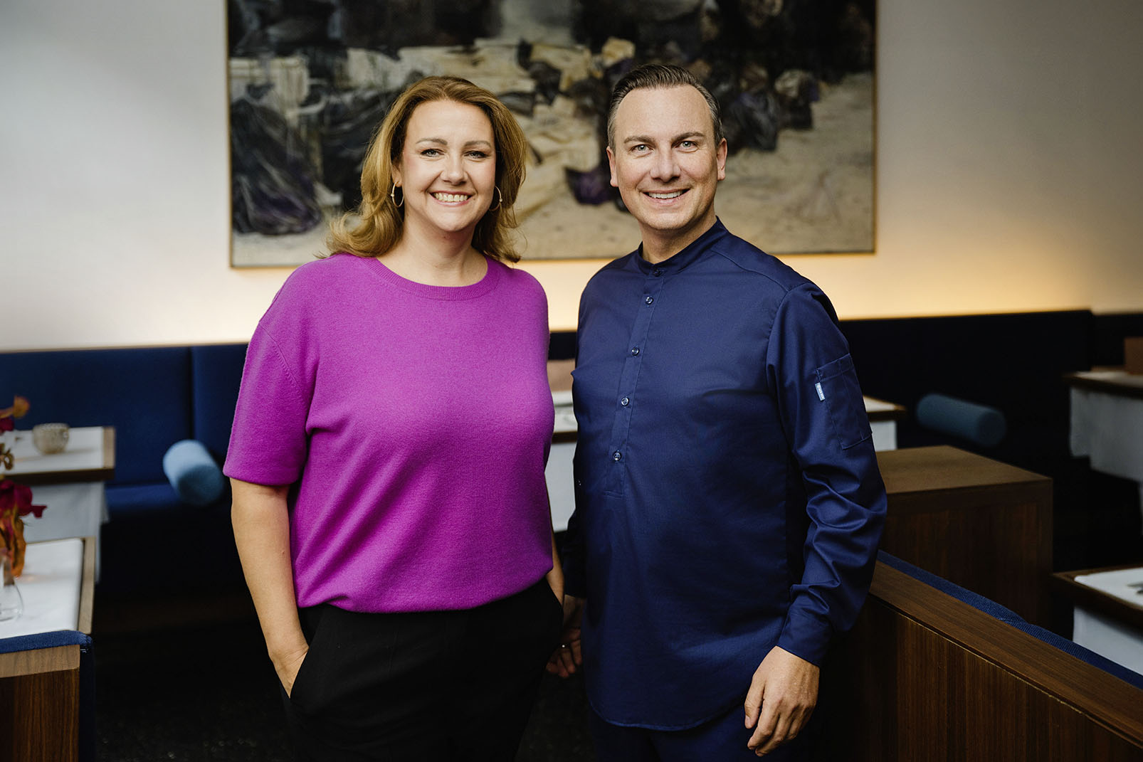 Pour revenir aux origines de ce parcours singulier, on revient aussi sur les lieux de son enfance, dans un Kreuzberg désormais gentrifié où déambulent des hordes de touristes. A deux rues du resto, les couleurs des Alliés tapissent le musée dédié au Checkpoint Charlie, avec cette nouvelle banderole bleue et or enjoignant à Poutine de quitter l’Ukraine. L’enseigne d’abord. Une carpe et un colibri stylisés qui paraissent danser ensemble, invitant à danser sur ce milieu du monde, cette frontière intangible entre est et ouest, la ligne de démarcation qu’explore le chef dans sa cuisine depuis qu’il a eu son épiphanie. L’Asie, désormais omniprésente dans ses créations: l’étage inférieur tapissé de céramiques et de vases évoquant le Japon, la Chine, la Thaïlande cohabite avec le mobilier et les œuvres contemporaines, des banquettes sobres et un mobilier design plutôt minimaliste.