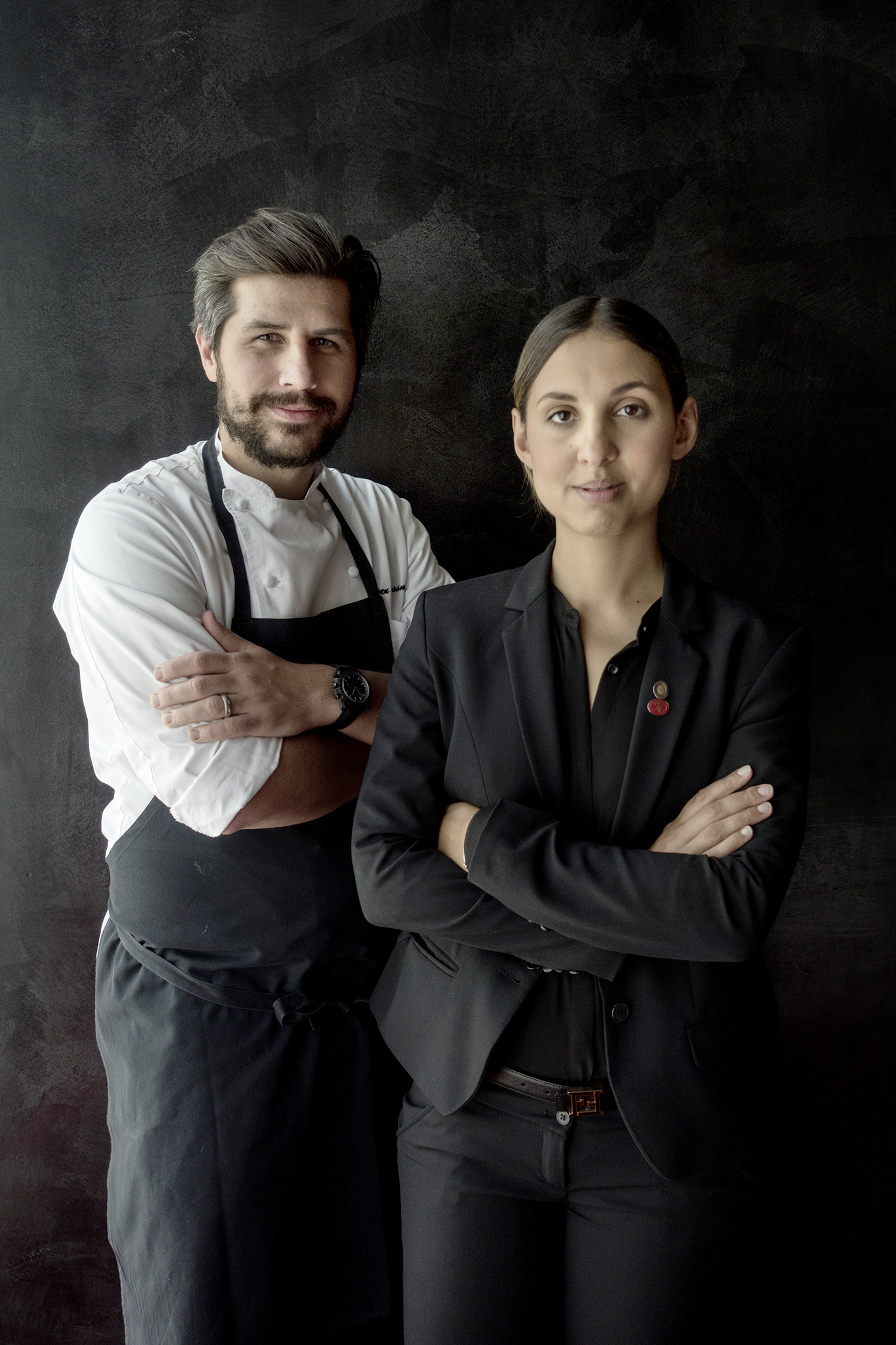 Ce n’est pas tout: Sven forme avec sa femme Amanda Bulgin, Master of Wine, un couple étonnant à la ville comme à la scène: «Je m’identifie à la cuisine de Sven et ma philosophie est de concevoir des accords mets-boissons comme autant d’expériences.» Pas question pour Amanda de miser sur la facilité: le «pairing» doit exposer une opinion, provoquer des émotions». Ne pas hésiter à bousculer, provoquer, marier des goûts nouveaux, en partant de la composition moléculaire des ingrédients pour déboucher sur un monde de possibles. Par exemple? Un thé aux herbes de montagne avec l’omble. Un grand madère, complexe, aux arômes de noix, d’abricot sur le Swiss dim sum.