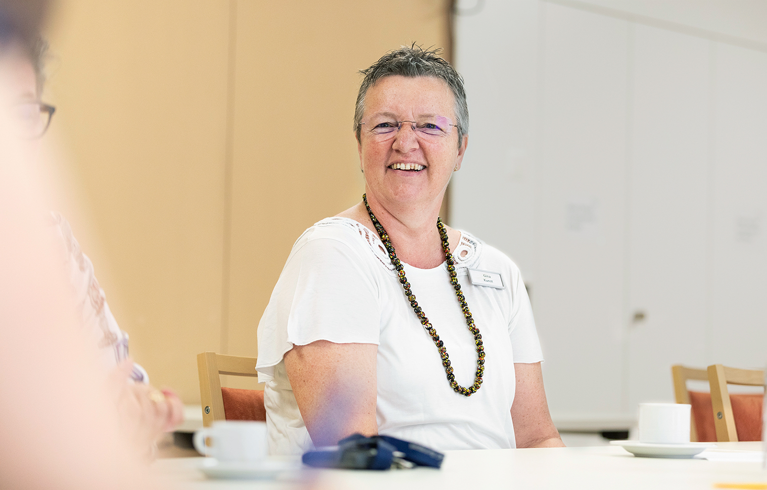 In den Alterszentren Gäu ist alles ein wenig anders: Hauskater Simba begrüsst die Gäste höchstpersönlich. Er liegt schnurrend auf der Empfangstheke. «Wie Simba führen bei uns auch die Bewohnerinnen und Bewohner ihr Leben wie gewohnt weiter», sagt Gina Kunst, die Vorsitzende der Geschäftsleitung. «Für uns zählt, was ihnen wichtig ist, das gehört zu unserer Philosophie. Daher tragen unsere Mitarbeitenden keine Berufskleider – eben wie daheim. Einzig ein Namensschild verrät, dass es sich um Personal handelt.» Dabei zeigt sie lächelnd auf ihr eigenes. Einzig «Gina Kunst» steht darauf, ohne jegliche Funktionsbezeichnung. Die interessiere die Bewohnenden eh nicht, meint sie verschmitzt.