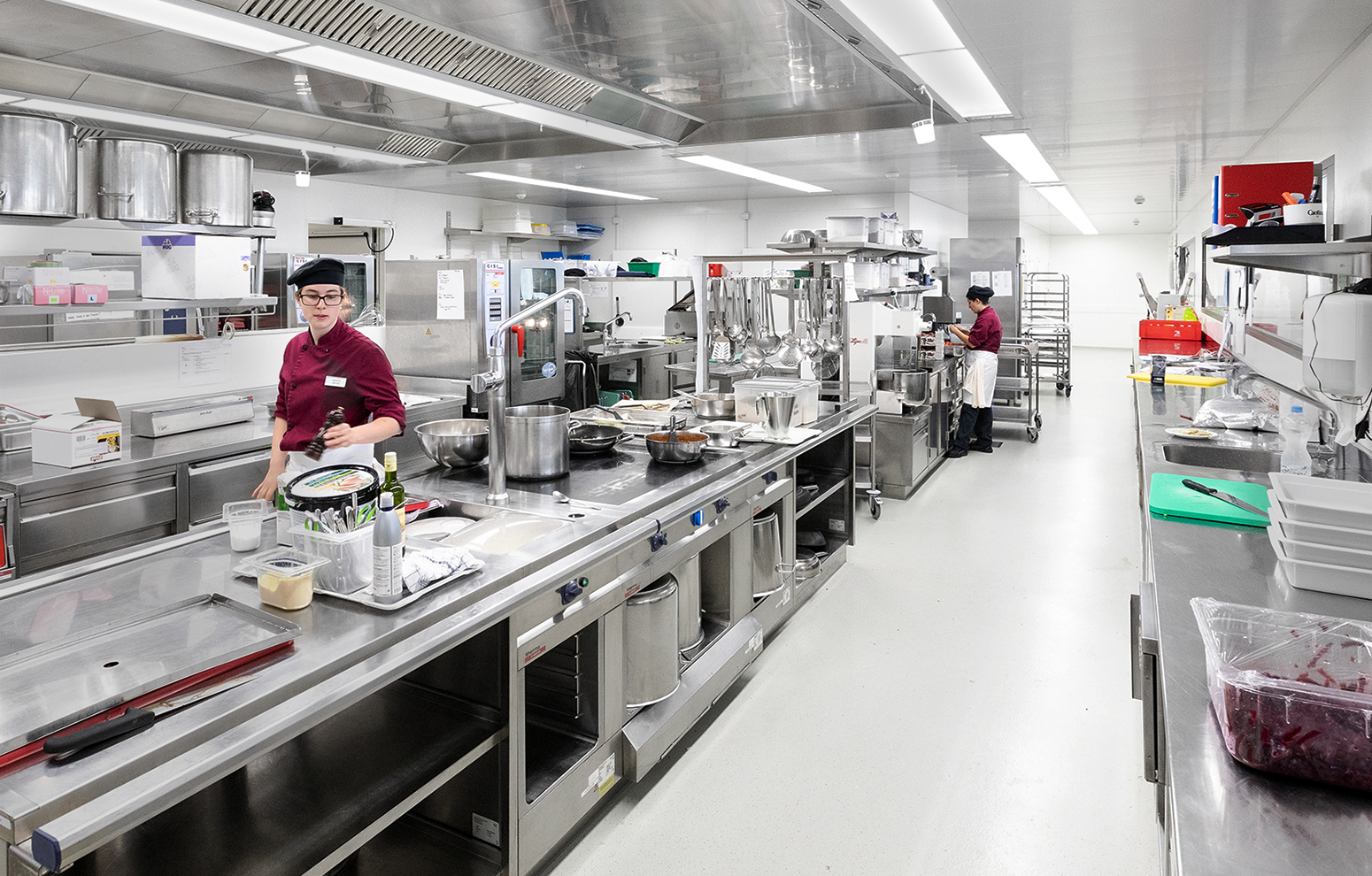 Als Nächstes geht es in die Küche. Köchin Denise Probst macht sich auf den Weg ins Hauptlager im Keller. «Wir bestellen Tiefkühlartikel, Milch- sowie Economat-Produkte bei Pistor», erzählt sie. Mit dem Scangerät scannt sie die Strichcodes der benötigten Produkte direkt auf der Verpackung oder auf der am Lagerplatz angebrachten Etikette. Die Bestellung leitet sie vom Scangerät aus weiter. «Pistor liefert zwei- bis dreimal wöchentlich – je nach unserem Bedarf», ergänzt sie. Zurück in der Küche, treffen wir auf Küchenchef Lajos Szabo, der erst kürzlich in der GAG angefangen hat. «Ich kenne Pistor schon von meinem vorherigen Arbeitsort und bin sehr zufrieden mit der Lieferantin», gibt er zu verstehen.