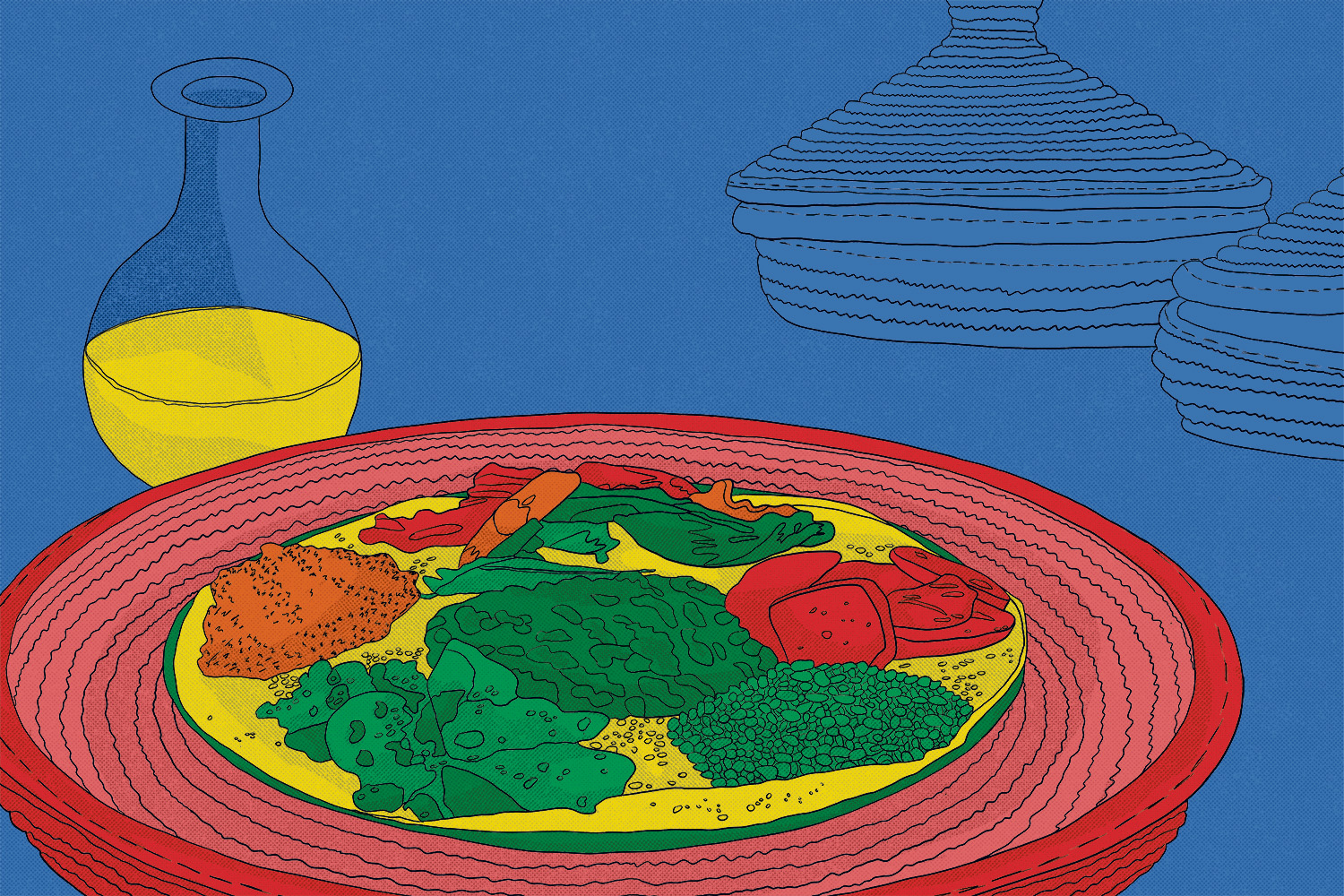 Gekocht wird mit frischem Gemüse, Hülsenfrüchten, Fleisch und vielen Gewürzen. «Auf dem Teller wechseln sich milde und pikante Speisen ab», sagt der Gastgeber. «Äthiopien wurde nie kolonialisiert. Deshalb ist die Küche frei von europäischem Einfluss.»