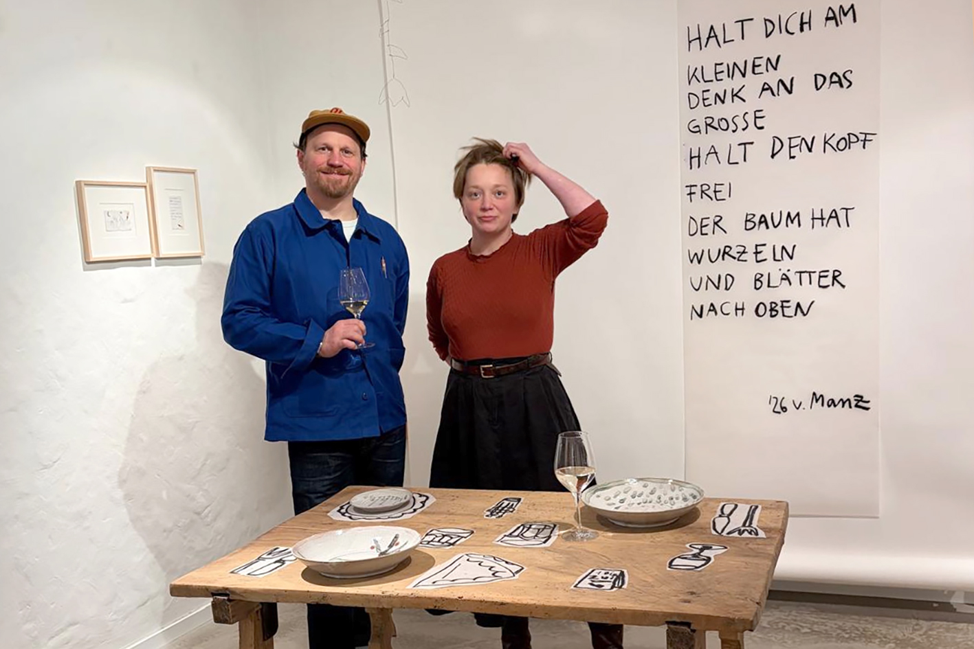 Kunst spielt in der Arena Lodge & Guesthouse eine grosse Rolle. Mark Thomas Müller organisiert regelmässig Ausstellungen, Vernissagen und hat im Haus sogar eine kleine Galerie namens «Spazi Spezial» eingerichtet. Zurzeit werden dort Werke von Vroni von Manz gezeigt. Sie ist eine in Zürich lebende Bayerin, die sich als leidenschaftliche Köchin mit dem Thema «Essen und Trinken» auseinandergesetzt hat. Neben anderen Werken zeigt Vroni von Manz zum ersten Mal bemaltes Porzellan, das von der Küche von Gaia Bongiorno inspiriert ist.
