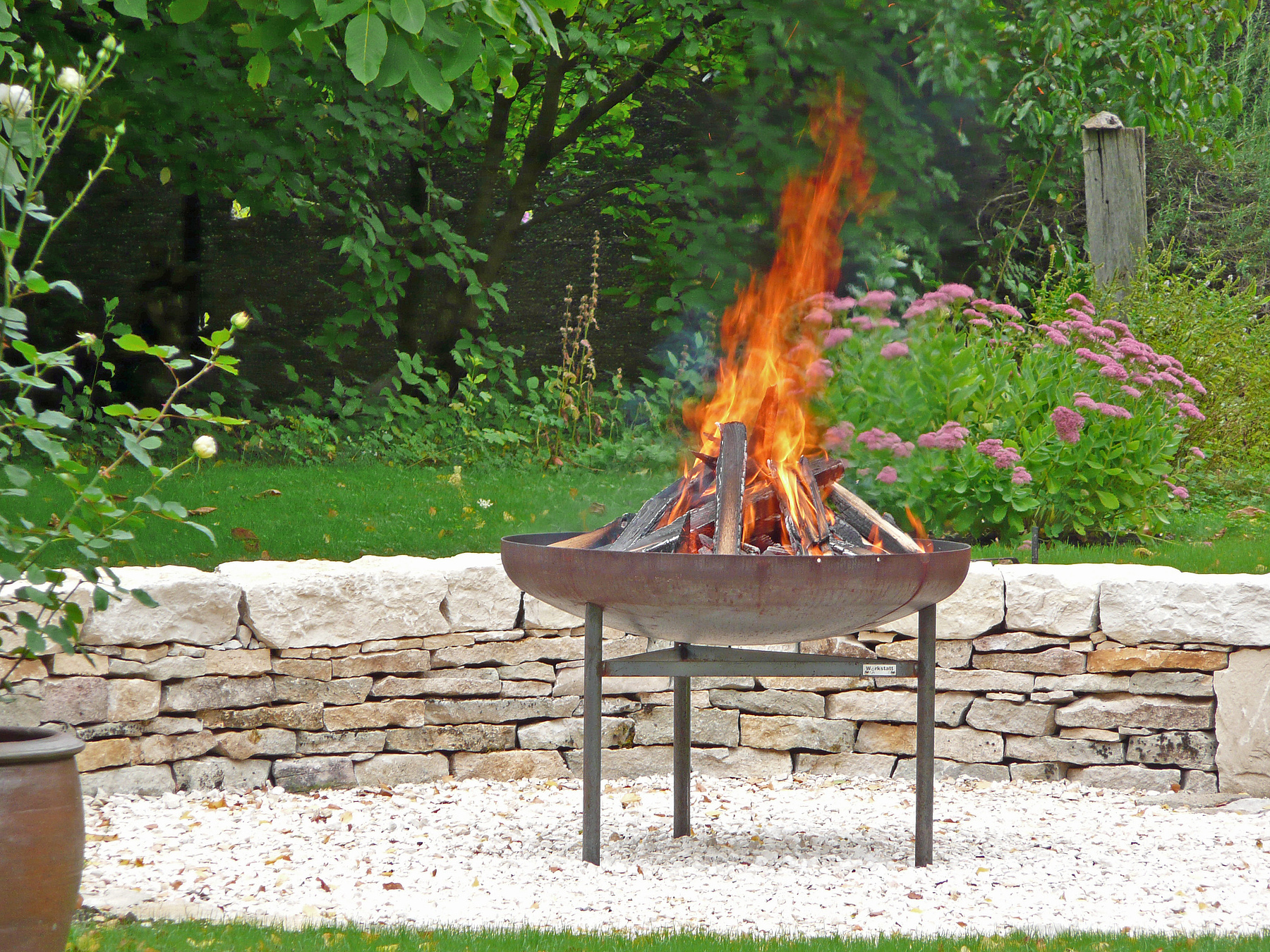 Von Klöpperboden bis flach gewölbt In den Schalen der Metallbaufirma Dörig in Bischofszell lässt sich das Feuer besonders einfach entfachen: entweder im Garten oder auf einer Restaurantterrasse. Die massive Schale besteht aus feuerfestem Stahl, das angeschweisste Bodenrohr lässt die Schale auf der gewünschten Höhe schweben. Preis: ab 190 Franken. www.doerigmetallbau.ch (ZVG)