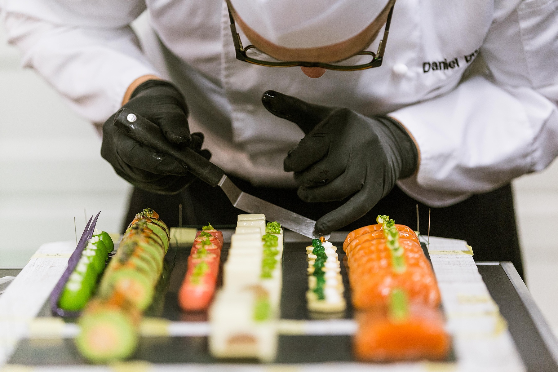 Swissness und Natur – auf diese zwei Punkte konzentrierten sich die Ostschweizer bei ihrer kalten Kochkunst-Show. So zeigten sie auf ihrem Ausstellungstisch unter anderem verschiedene Fingerfood-Varianten wie Tessiner Rohschinken, gefüllt mit Pilzduxelles, frittierter Risotto und Tomaten-Chutney.
