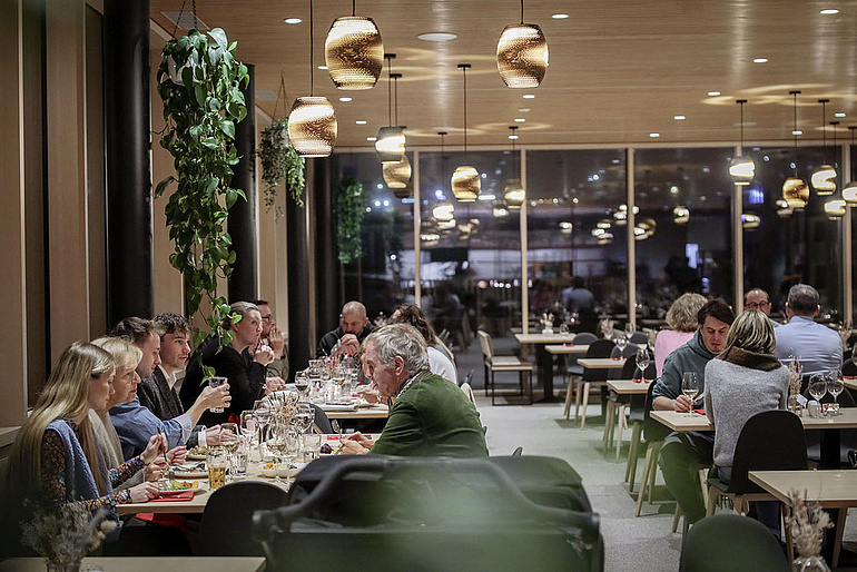 Abends können die Gäste nach Lust und Laune am Food Market schlemmen. Im Fixpreis von 65 Franken sind die alkoholfreien Getränke sowie Kaffee und Tee ebenfalls inbegriffen. Wer nur wenig Hunger hat oder das Essen mit ins Zimmer respektive in die Ferienwohnung nehmen möchte, kann sich seine Portion selber zusammenstellen. Der Preis wird nach Tellergrösse und Portionsgewicht individuell berechnet. Der Gast checkt sein Essen selber aus und bezahlt digital.