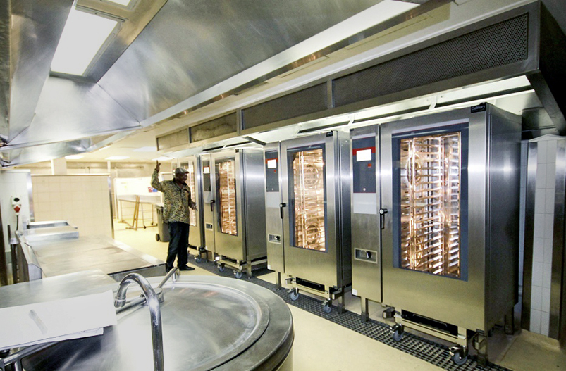 Um einen reibungslosen Ab-lauf sicherzustellen, wurden die 45 Köche vor Ort von den Salvis-Experten geschult. Um die Daten der HACCP-Gefahrenanalyse zu sichern und Kochprogramme zu laden, wurde ein Salvis Smart Web System installiert, welches den Datenaustausch zwischen den Geräten und dem Küchenchefbüro ermöglicht. Die Combi-Steamer bereiten die Gerichte dank Vitalisierprogrammen in A-la-carte-Qualität auf und werden einfach per Touchbildschirm bedient.