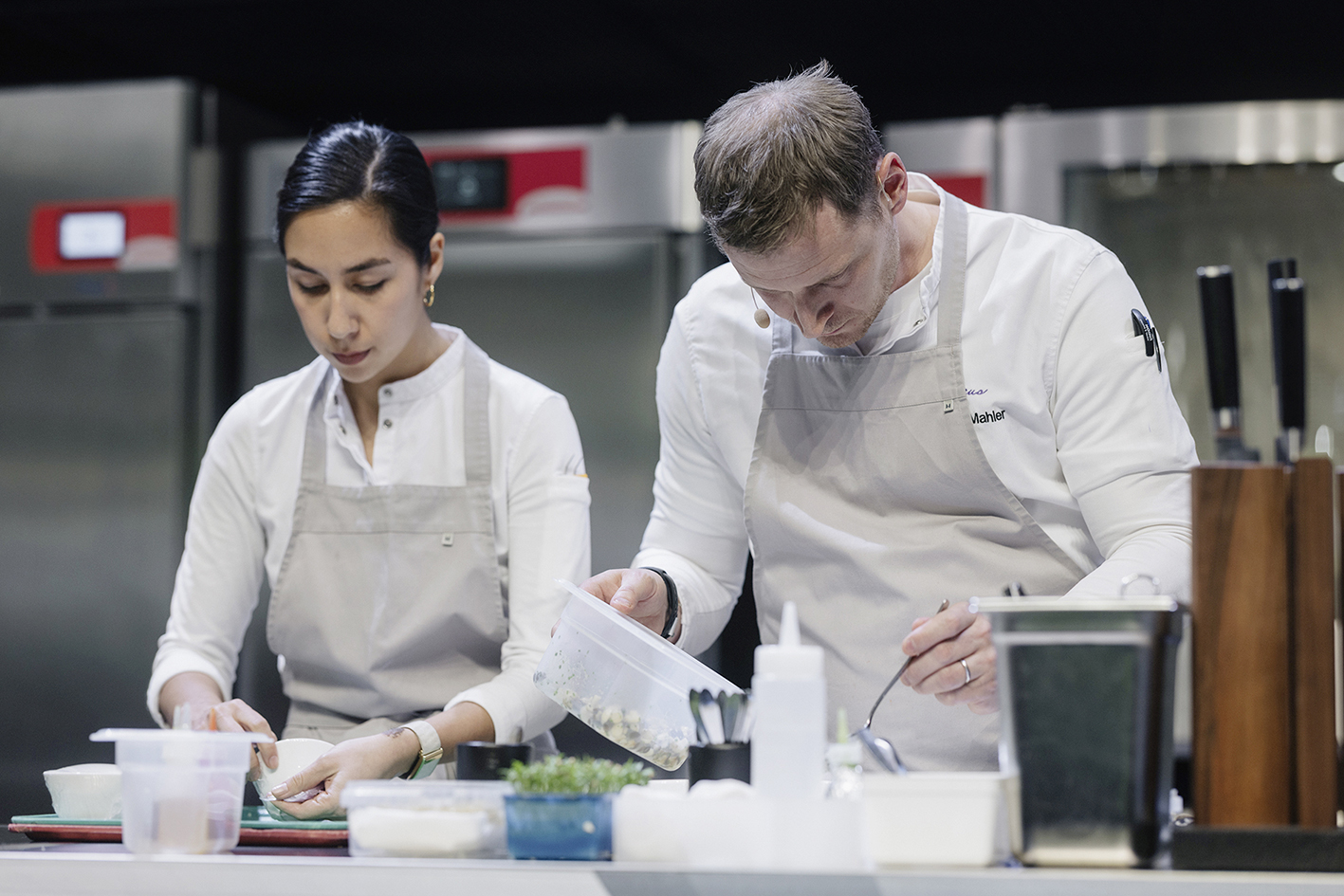 Danach gab es Einblicke und Tipps von den besten Köchinnen und Köchen des Landes. So präsentierten die Pâtissièren Alexandra Helbling, «Igniv» in Zürich, und Nicole Lüthi, «Memories» in Bad Ragaz/SG, ein etwas anderes Dessert aus Buchweizen. Und von Mike Wehrle, Corporate Culinary Director der Bürgenstock Collection, gab es Swiss Lachs mit Blumenkohl und Orange. André Kneubühler vom «Omnia» in Zermatt/VS brachte Alpenzander und Walliser Safran mit.