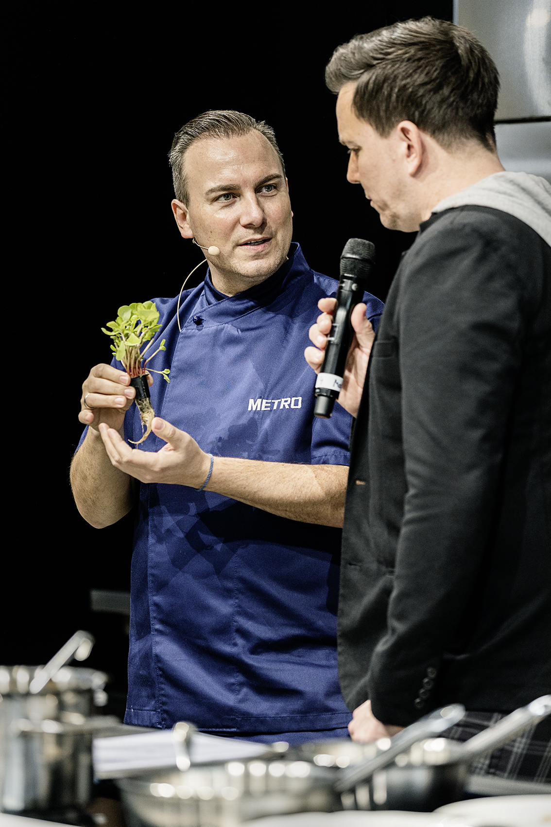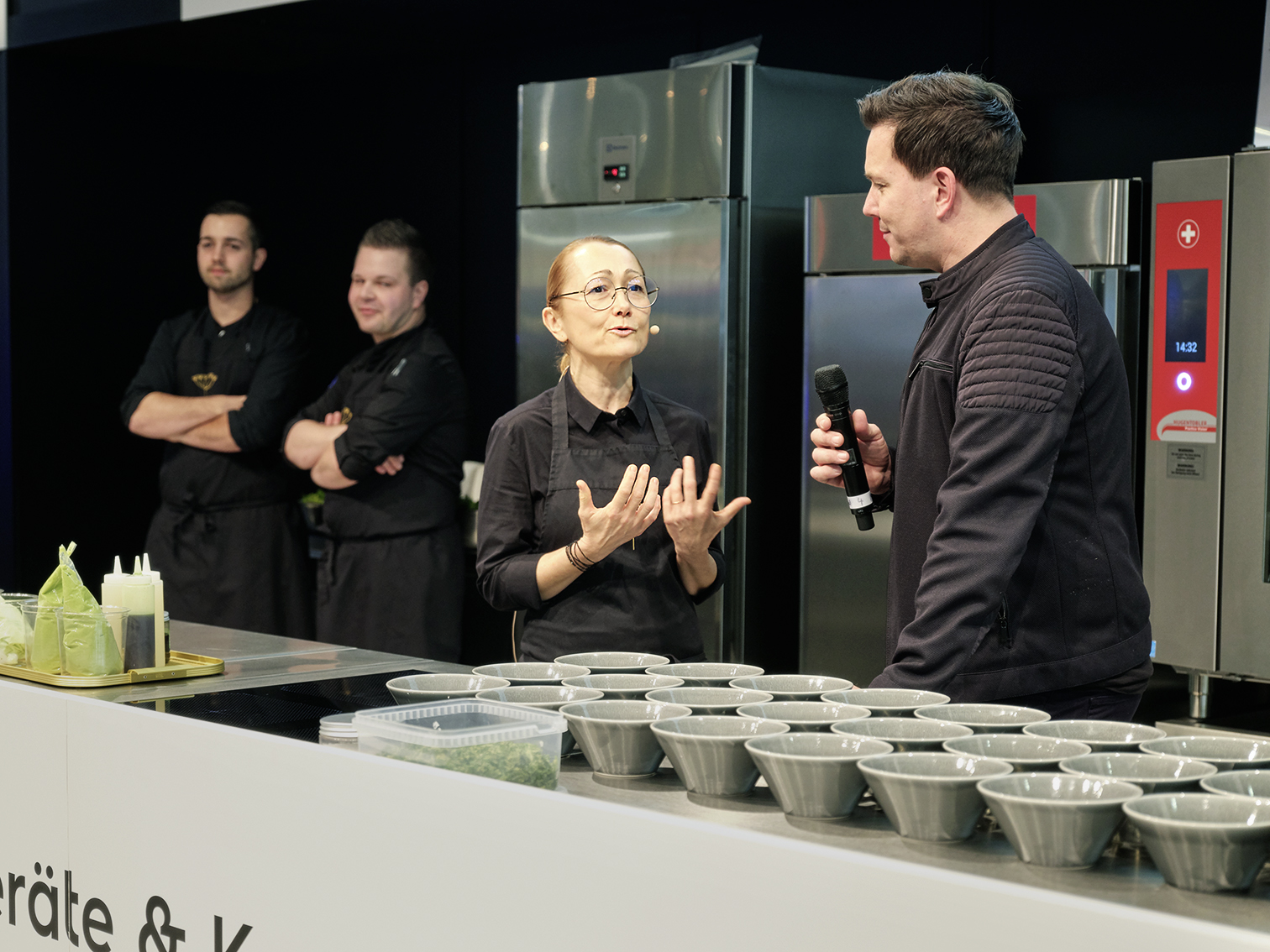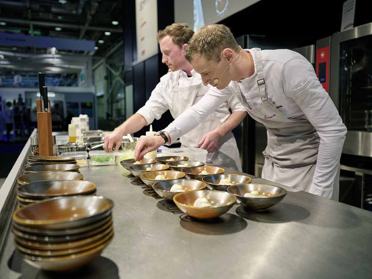 Wer sich in der Kocharena an der Igeho einen Sitzplatz ergattern wollte, musste rechtzeitig kommen. Denn der Andrang war gross, als die Stars der Branche während fünf Tagen einen Einblick in ihre Küche und Philosophie gewährten. So zum Beispiel am Sonntag, als der deutsche Superstar Tim Raue für das Publikum kochte. Mit seinem Restaurant in Berlin-Kreuzberg holte er sich 19,5 Gault-Millau-Punkte und zwei Michelin-Sterne. In der Kocharena präsentierte er unter anderem das deutsche Traditionsgericht Königsberger Klopse. «Ich finde es wichtig, dass wir Köche unsere kulinarische Identität kennen», so Tim Raue.