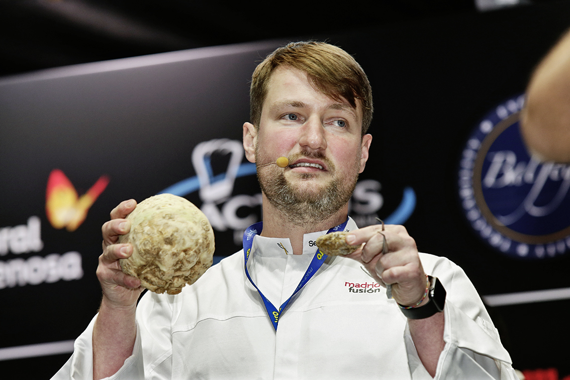 Un autre Berlinois, désormais auréolé de deux macarons Michelin, Sebastian Frank (Horvath), originaire de la zone frontière de l’Autriche avec la Hongrie, se concentre de même sur son environnement immédiat. Pas de produits nobles ni de fruits exotiques, mais des légumes et des herbes cultivés sur le toit de son resto, du gibier de l’arrière-pays brandebourgeois, le paprika et les parfums de son enfance austro-hongroise, des baies et des champignons croustillants, du céleri cuit en croûte de sel, ni foie gras ni huile d’olive mais du saindoux pour corps gras. «La créativité doit venir du renoncement, elle doit se concentrer sur le territoire, l’enfance et les racines», estime ce puriste. Sebastian Frank travaille sur la mémoire, selon des modalités très originales et personnelles: une démarche que Madrid Fusion récompense d’un prix spécial.