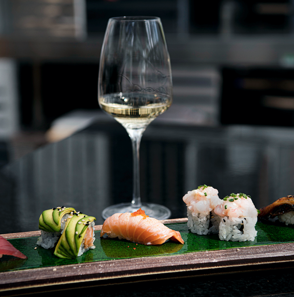 Mont-sur-Rolle La Côte AOC 2017 mit Kingfish Nigiri an einer Yuzu-Koshô-Sauce – welch ungewohnt mundendes Pairing! Auch der Epesses Grand Cru Lavaux AOC 2016 der Domaine Wannaz – ein biodynamisch produzierter Wein – und die veganen Inside-Out mit Lotuswurzeln, Ingwer und Karotten harmonierten.