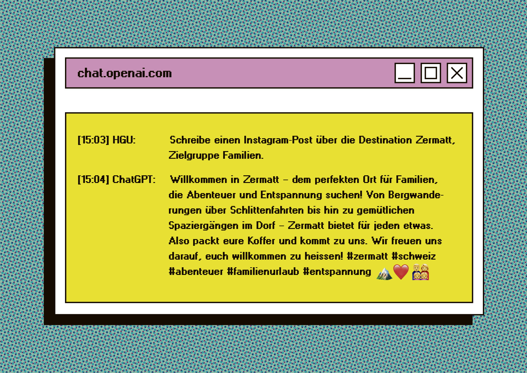 «Schreibe einen Instagram-Post über die Destination Zermatt, der Outdoor-Sportler anspricht.» Gibt man dieses Kommando an Chat GPT, liefert die künstliche Intelligenz, kurz KI, prompt einen kurzen Werbetext, inklusive der passenden Emojis. Ändert man das Kommando leicht ab, werden Seniorinnen oder Familienväter angesprochen.