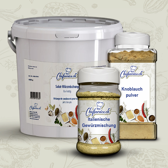 Innerhalb der Mimosa Food AG ist Chefservice.ch der neue Foodservice-Lieferant für Restaurants, Hotels, Heime und Spitäler. Seit über 70 Jahren stellt das familiengeführte Unternehmen mit Sitz in Beromünster/LU qualitativ hochstehende Produkte her. Dazu gehören Gewürzmischungen für frische Salate, feine Bouillons oder eine aromatische Würzung für Fleisch. Mehr als 250 Produkte bietet Chefservice.ch an und wöchentlich kommen neue dazu. So gibt es bei Chefservice.ch spezielle Pfeffer, Kräuter oder exotische Gewürze wie Sumach oder Zaatar. Produkte der Free-Linie sind frei von Glutamat, Palmöl und Konservierungsstoffen. Zudem können sich Kunden eigene Mischungen zusammenstellen. Wunschrezepte werden in Mengen ab 50 Kilogramm realisiert.