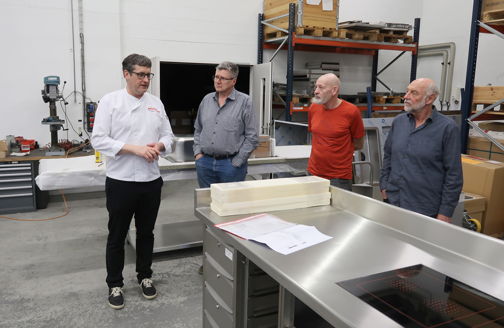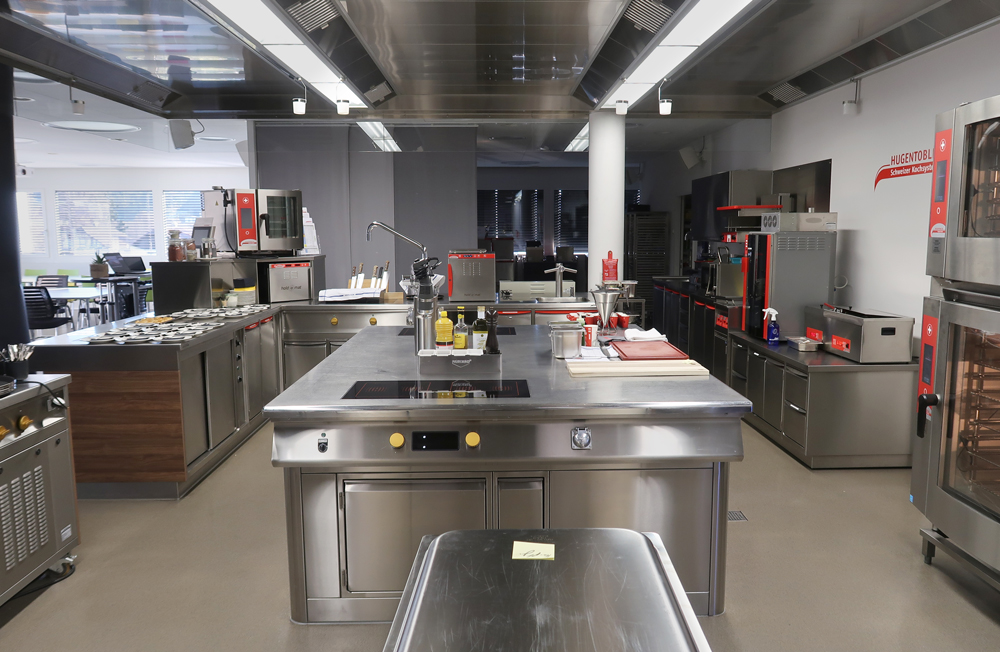 Seit genau 60 Jahren arbeitet Hugentobler daran, das Kochen neu zu denken. In der Einführung stellte Christoph Reichenbach, Leiter Ausbildung, den Teilnehmenden Erfindungen und Meilensteine des Unternehmens vor. Auf einem folgenden Rundgang zeigte Massimo Crameri, Sachbearbeiter Service, wie viel Elektronik in einem Kochherd steckt und wie dick der Chromstahl sein muss, damit die Abdeckung nicht wellt. So erstaunt es nicht, dass ein Laufmeter Kochherd rund 10 000 Franken kostet – je nach Ausführung.