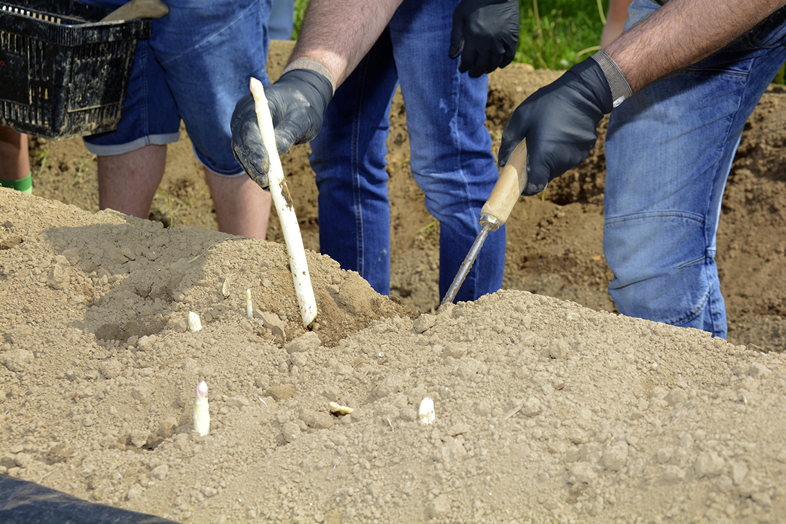 Adrian Dähler, Küchenchef in der Reha Klinik Rheinfelden/AG und nominiert für den Zukunftsträger – Berufsbildner des Jahres, war mit seinen drei Lernenden dabei. «Das ist für mich gute Ausbildungsarbeit, ich mache mit meinen Lernenden so oft wie möglich einen solchen Ausflug, das fördert die Gemeinschaft und ist lehrreicher als trockene Theorie.» Ein weiteres Mitglied des Schweizer Kochverbandes hatte seine Lernenden dabei: Peter Wohlgemuth, Küchenchef im Basler Bethesda-Spital. «Es ist interessant zu sehen, woher der Spargel kommt und wie er verarbeitet wird», waren sich Wohlgemuths Lernende einig. Überhaupt war der Anlass, der im Nu ausgebucht war, vor allem bei Lernenden beliebt. «Die Hälfte aller Teilnehmenden sind noch in der Ausbildung», freute sich Organisator Rolf Schöpfer. Und so passte es, dass nicht nur viel über die Kultivierung des Spargels zu erfahren war, sondern auch selber Hand angelegt werden musste. Gastgeber Thomas Wiesner vom Wiesner Beeriland in Bottmingen/BL gab Wissenswertes von der Wurzel bis zum Schälen der Spargel weiter. Der Landwirt zeigte den Teilnehmenden, wie Spargel richtig gestochen werden, damit sie ganz aus dem Boden kommen. Zum Abschluss wurden alle Teilnehmenden aufgefordert, bei einem Spargelrezept-Wettbewerb mitzumachen. Deshalb gab es für jeden je zwei weisse und zwei grüne Spargel mit auf den Heimweg. Die Spargelrezepte werden auf die HGU-App geladen und sind dort nachzulesen und nachzukochen. Dem besten Rezepteschreiber winkt die Teilnahme für zwei Personen am Probelauf der Schweizer Kochnationalmannschaft.