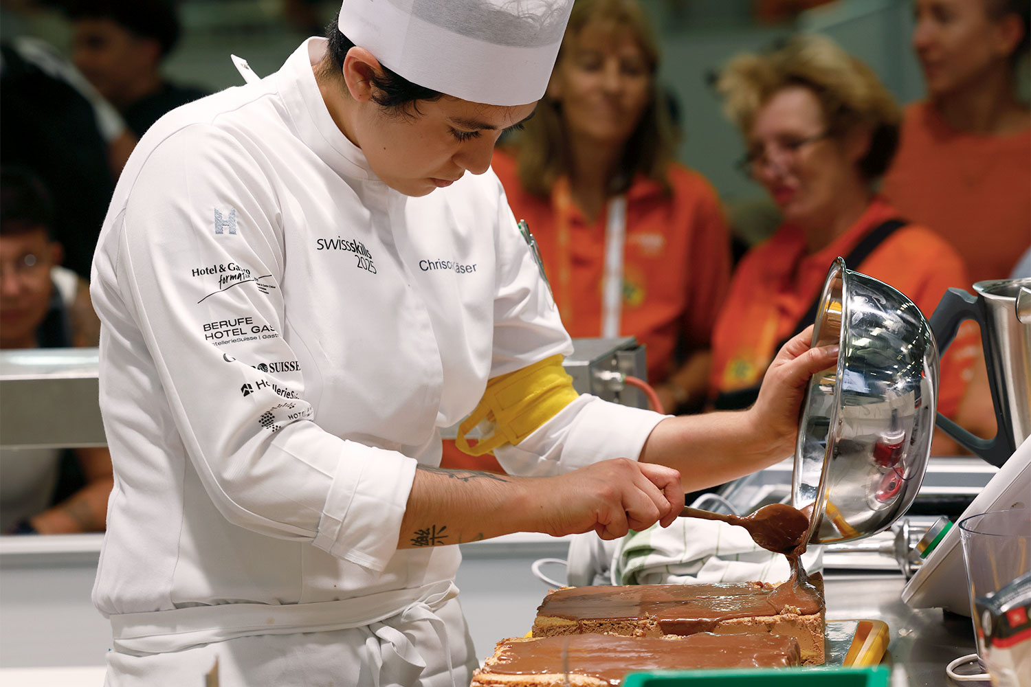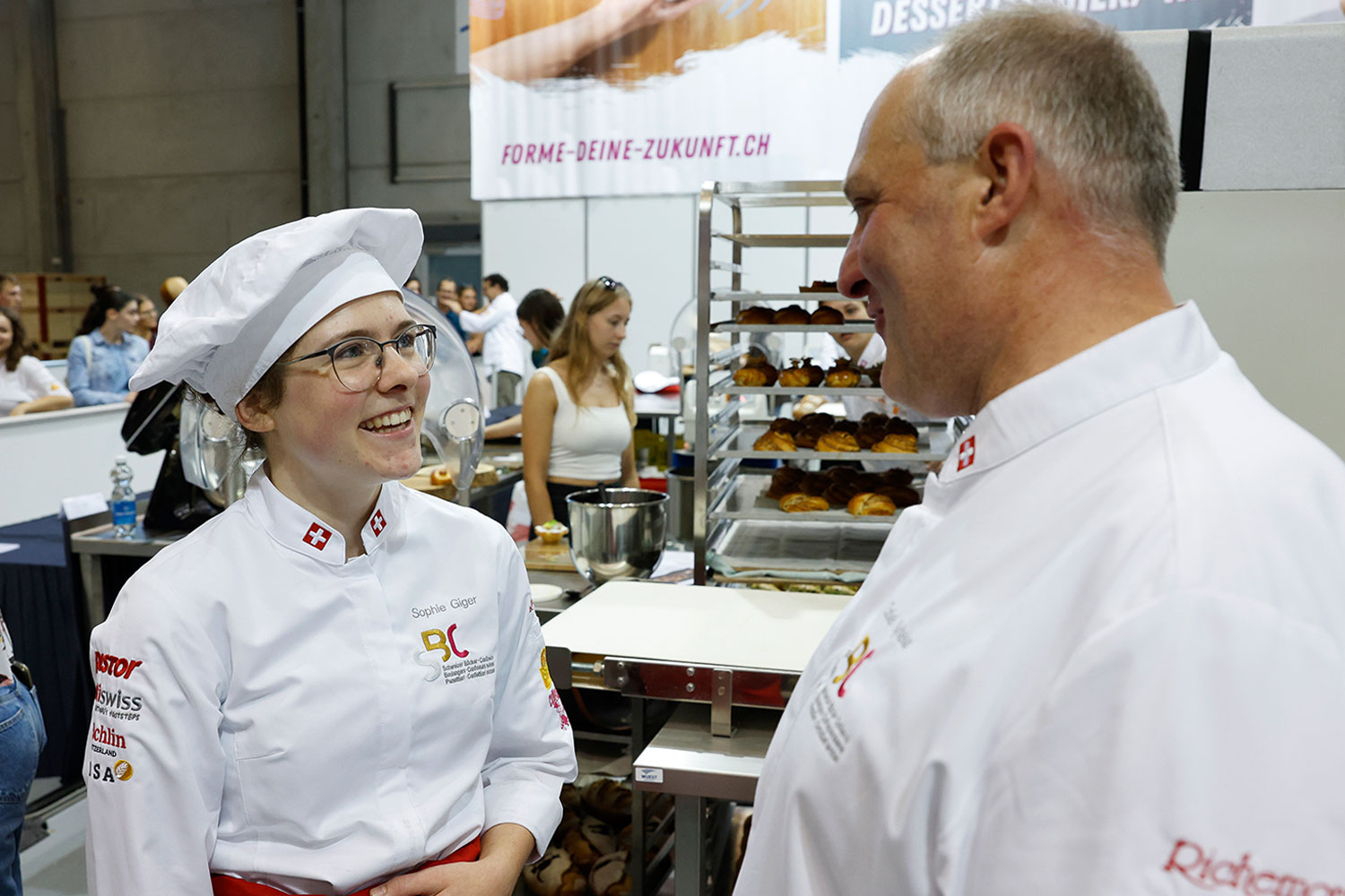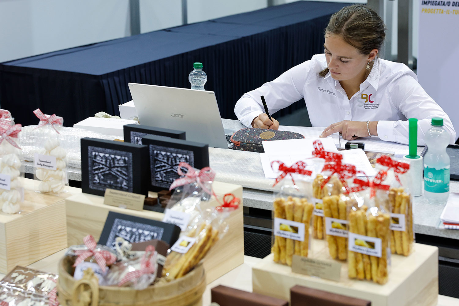 Auch die besten neun Lehrabgängerinnen im Detailhandel sowie die 23 besten Absolventinnen und Absolventen der Fachrichtungen Bäckerei-Konditorei und Konditorei-Confiserie standen in Bern im Einsatz. Die jungen Talente der Bäckerei-Confiserie-Branche zeigten ihr Können gleich in drei Berufsfeldern. Die Bäcker/-innen-Konditor/-innen der Fachrichtung Bäckerei kreierten innert acht Stunden ein breites Sortiment von Brot über Feingebäck bis zu Schaustücken – immer mit Fokus auf Handwerk, Kreativität und präzise Planung. In der Fachrichtung Konditorei-Confiserie standen süsse Meisterwerke im Mittelpunkt: Torten, Patisserie, Pralinen und fantasievolle Schaustücke verlangten höchste Präzision und gestalterisches Talent. Und die Detailhandelsfachleute Bäckerei-Confiserie gestalteten einen Verkaufsauftritt mit Dekoration und Social-Media-Beitrag, simulierten Beratungsgespräche und bewiesen dabei ihr Gespür für das Kundenerlebnis.