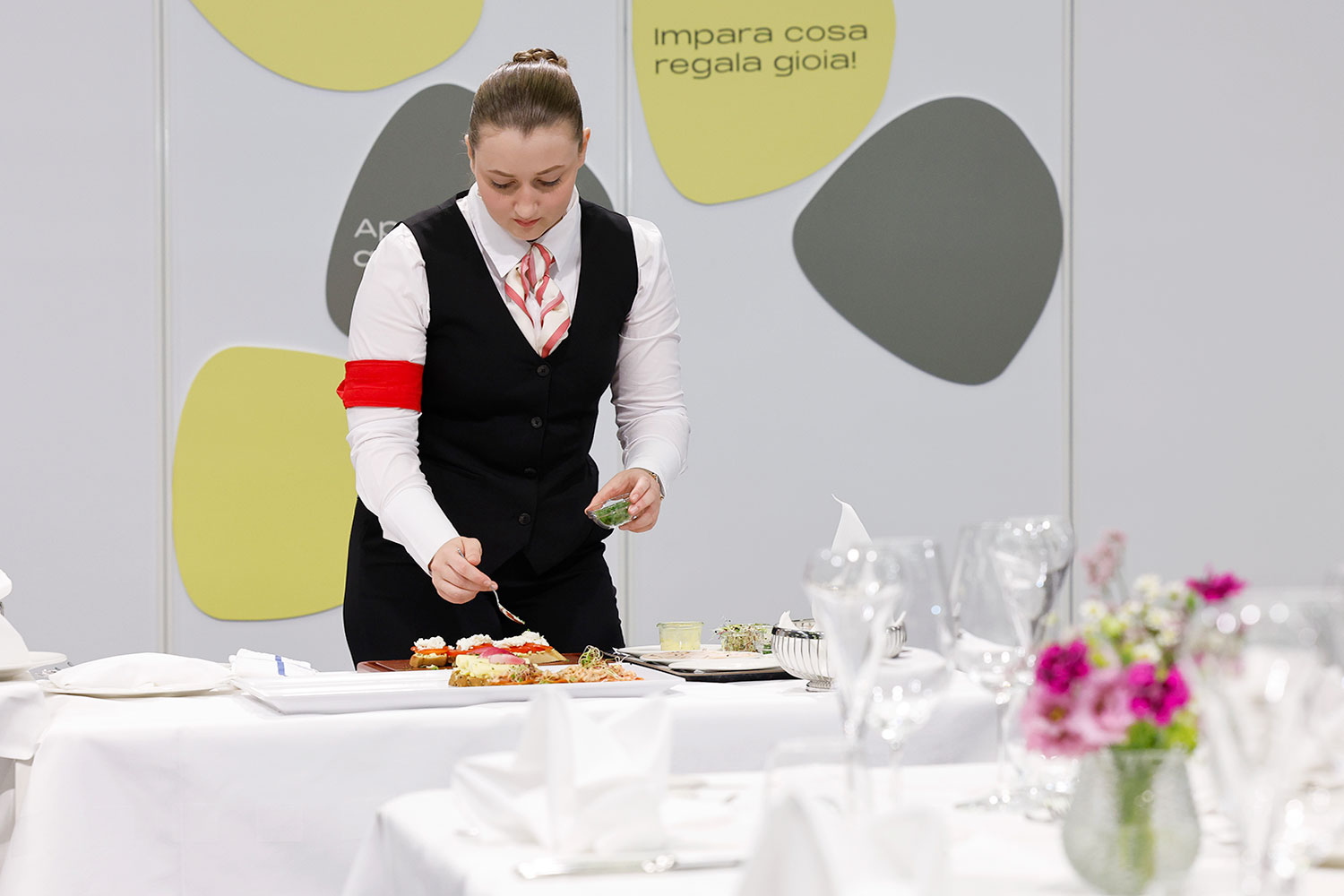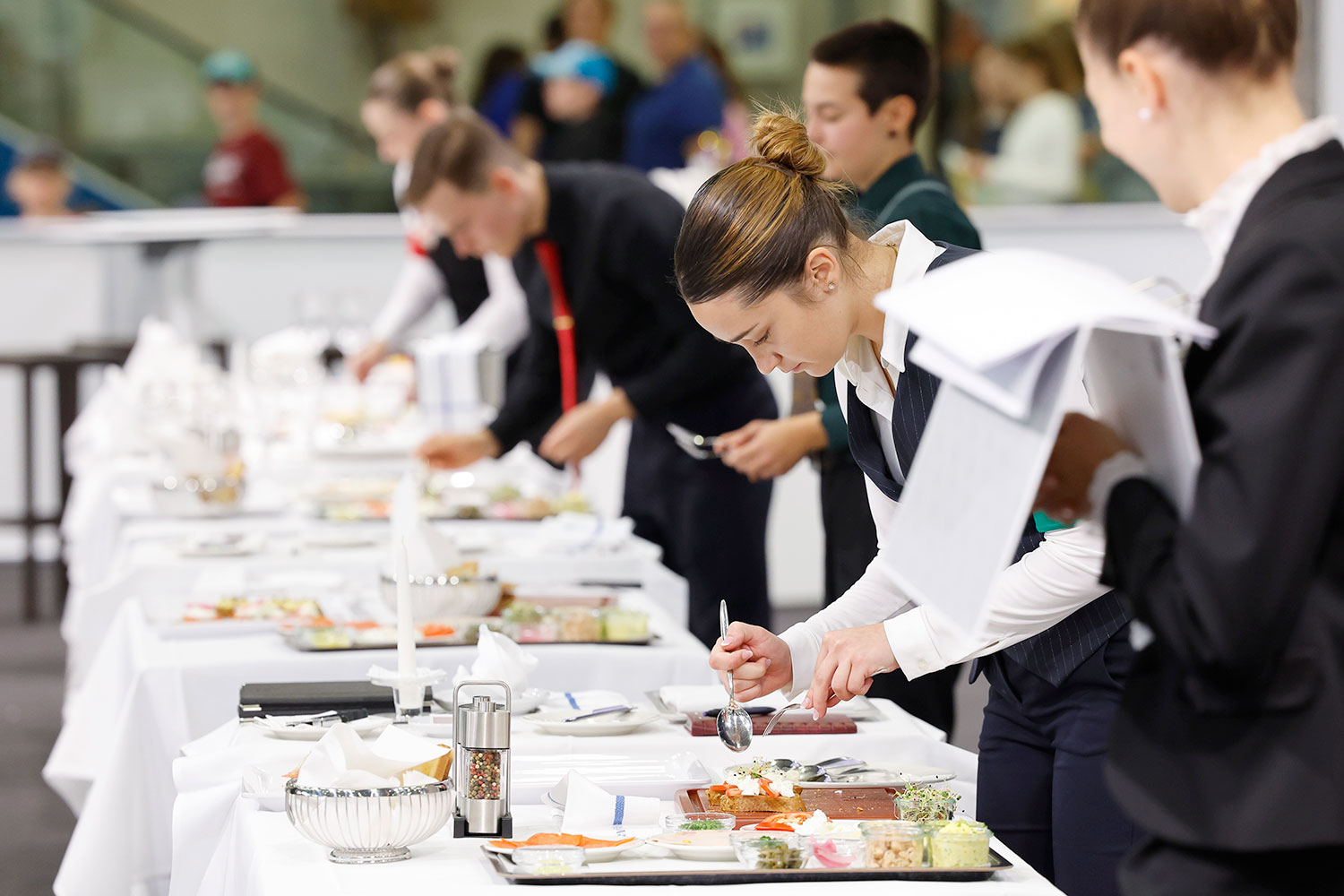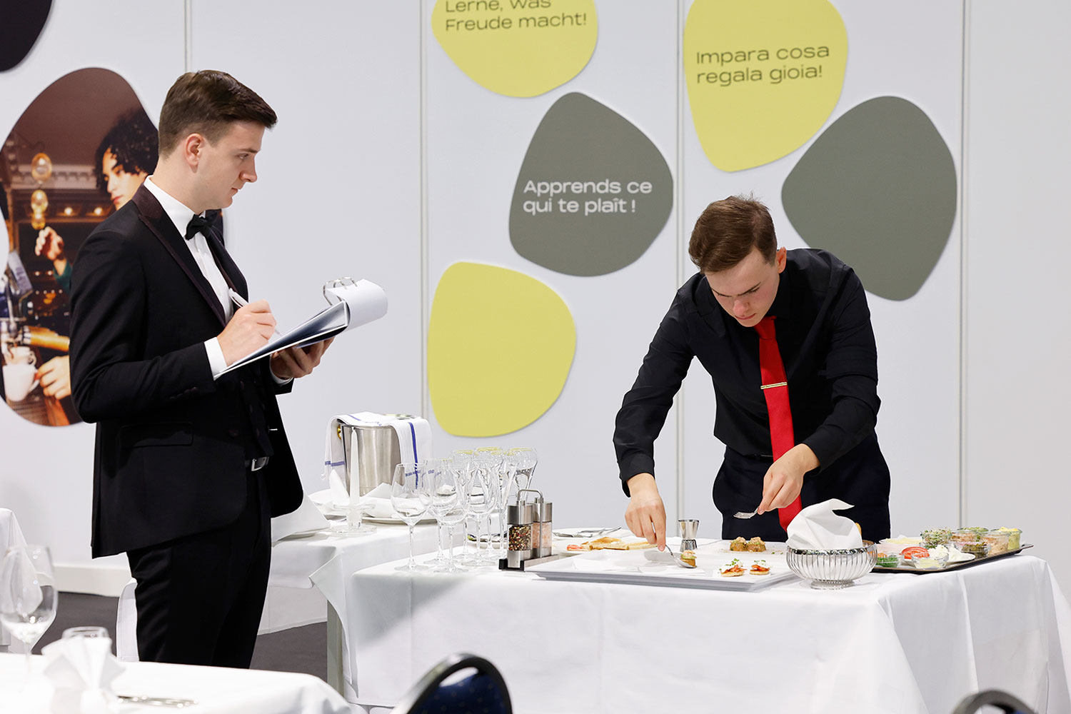 Die acht Teilnehmenden haben vier intensive Wettbewerbstage hinter sich. Einerseits bewiesen sie ihr Können in verschiedenen Gästeservices, von Bankett über A-la-carte bis zum Fine Dining mit Arbeiten vor dem Gast und einem Champagnerservice. Dazu kamen kreative Aufgaben wie die Präsentation eigener Kaffee- und Mocktail-Kreationen sowie einer flambierten Süssspeise. Dazu wurde das technische Können abgefragt, zum Beispiel beim Filetieren von Früchten und dem Verkauf und Dekantieren von Wein. Neben der Umsetzung und der Beachtung der Serviceregeln achtete die Jury auf das Auftreten der Teilnehmenden, ihre Freundlichkeit, sowie die Sauberheit und Sicherheit beim Arbeiten.