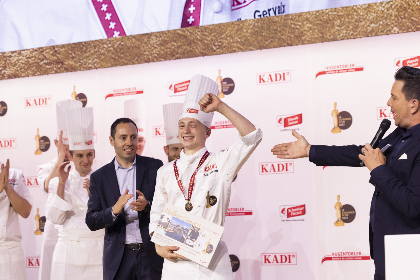 Am Finaltag lieferten sich die fünf Kandidaten ein Kopf-an-Kopf-Rennen. «Das Niveau war dieses Jahr bei allen Teams sehr hoch», sagte Franck Giovannini, Präsident der Degustationsjury. Auf den zweiten Platz kochte sich Daniele Angelosanto, Sous-chef im Restaurant de l’Hôtel de Ville in Crissier/VD. Er eroberte auch die Herzen der Zuschauer und erhielt den Publikumspreis. Sein Teamkollege Colin Gervaix wurde zudem zum besten Commis gekürt.
