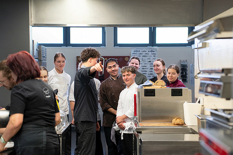 Die Lernenden bei der Führung durch die Wettbewerbsküche.