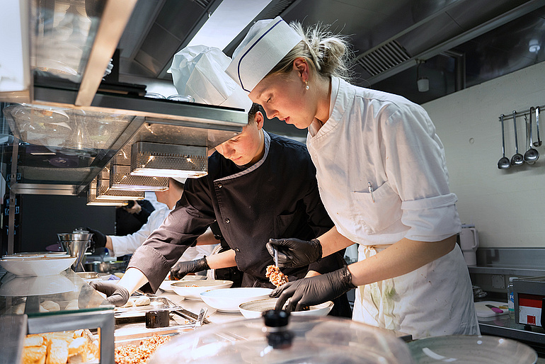 Zwei der teilnehmenden Lernenden beim Anrichten ihres Menüs. (Bilder ZVG)
