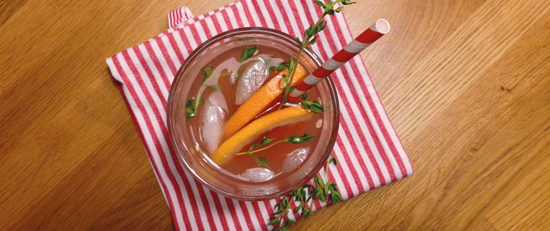 Zum Mischen des Cocktails Gin, Sirup und Grapefruitsaft in einen mit Eis gefüllten Cocktailshaker füllen und shaken. Glas mit einer Grapefruitscheibe und einigen Eiswürfeln füllen. Den Drink in das Glas abseihen und mit Thymian garniert servieren.