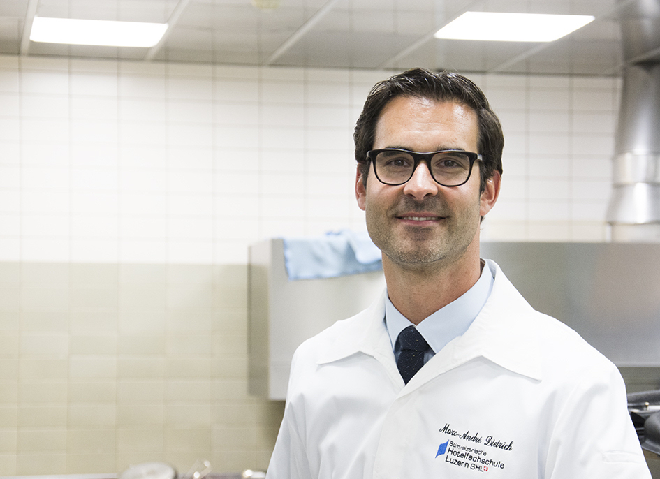 Mittlerweile kann Marc-André Dietrich darüber lachen, wenn er sich an seine gemischten Gefühle vor einem Jahr erinnert. «Ich hatte Angst», gibt der Baselbieter zu. Mit vielen Fragezeichen trat er vor einem Jahr die Stelle als Leiter Küche/Produktion an der Schweizerischen Hotelfachschule Luzern SHL an: Ist das überhaupt mein Ding? Wird mir die Arbeit als Küchenchef in der Spitzengastronomie fehlen? Wie denkt die Branche über meinen Entscheid?