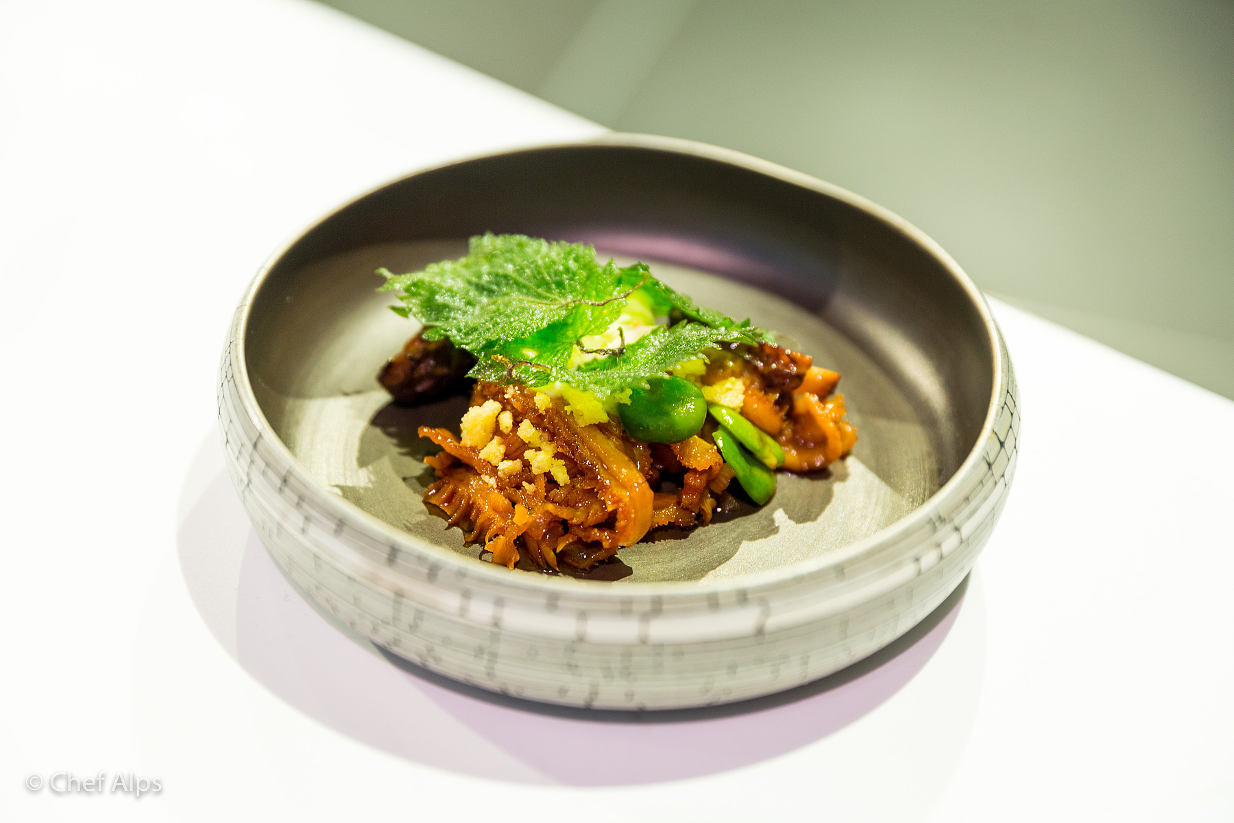 «Das Atelier Crenn ist ein Ort, der kreative Menschen willkommen heisst. Ich will sie mit meinen Gerichten inspirieren und mit ihnen über meine Speisen in Dialog treten.» Essen sei für Dominique Crenn eine Sprache, um ihre Gefühle mit anderen zu verbinden. Inspiration brachte sie Ende Mai nach Zürich, indem sie den 1400 Anwesenden am International Cooking Forum Chef Alps eines ihrer wichtigsten Gerichte dieses Frühlings präsentierte: Fish and Chips. Dafür grillierte und räucherte sie das Mark des Schwertfisches und servierte es mit Passionsfrucht sowie selbst gemachtem Essig. Dominique Crenn stellt diesen gerne aus Gemüseresten her. Die Chips stellte sie als Kartoffelspaghetti dar und richtete sie separat an.
