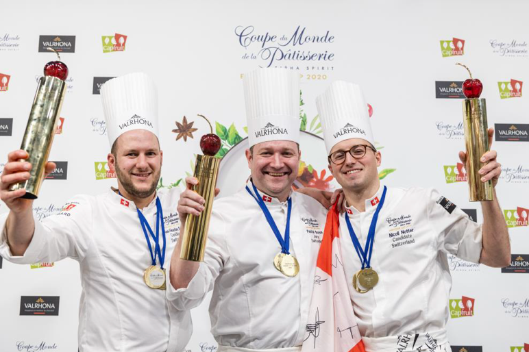 Das Schweizer Team, bestehend aus dem Konditormeister Jean-Sébastien Guinet und dem Schokoladenspezialisten Nicoll Notter, hat den Pastry Cup gewonnen. Team Schweden und Team Russland erreichten die Plätze zwei und drei. Die drei Teams treffen sich am 24. und 25. Januar 2021 wieder zum Weltfinale des Wettbewerbs, das im Rahmen der Sirha-Messe in Lyon, Frankreich, stattfinden wird.