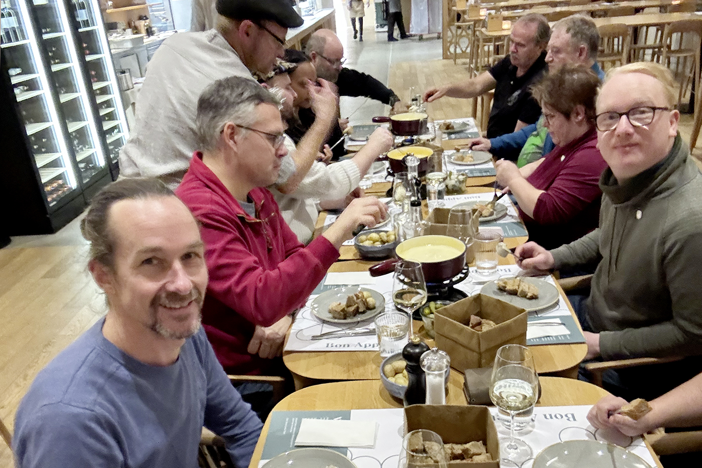 Zu guter Letzt genoss die Runde ein feines Käsefondue, bei dem verschiedene Geschmacksvarianten, unter anderem mit Trüffeln, serviert wurden. Ein Teil der Gruppe übernachtete anschliessend auf dem Stoos in einem der beiden Hotels, während der andere Teil mit der Bahn nach Morschach/SZ zurückreiste.