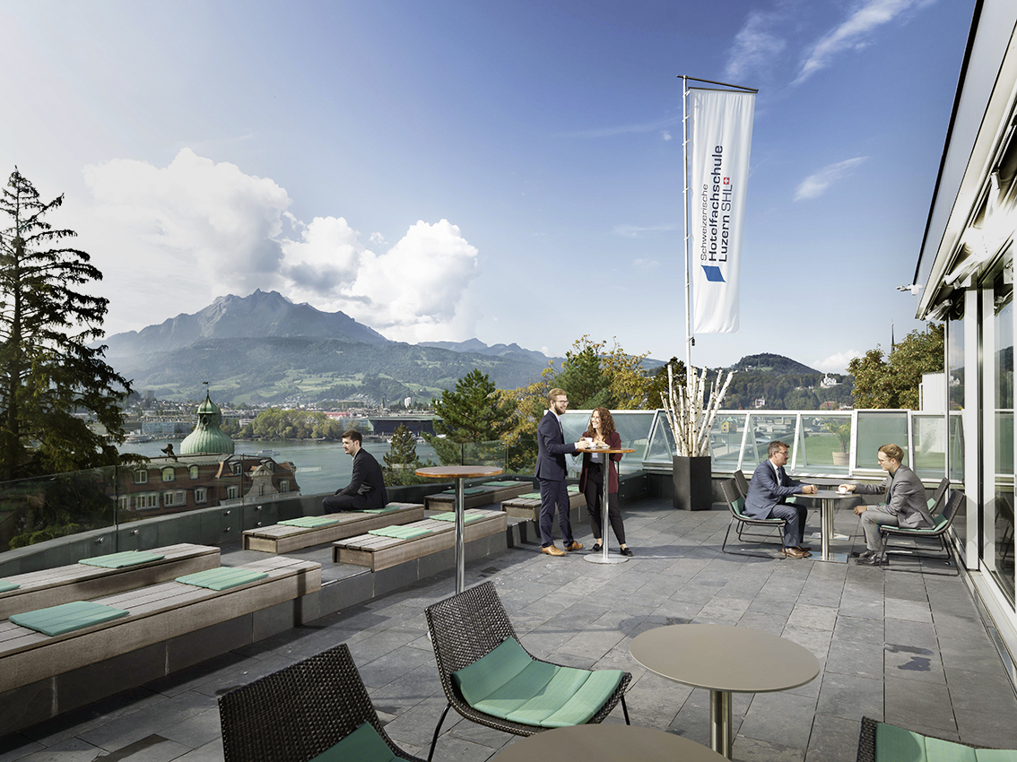 Ergänzend dazu werden externe Schulungsräume im Schweizerhof Annex zugemietet, damit Studierende den zeitlichen Ablauf ihres Studiums nach persönlichen Wünschen gestalten können.