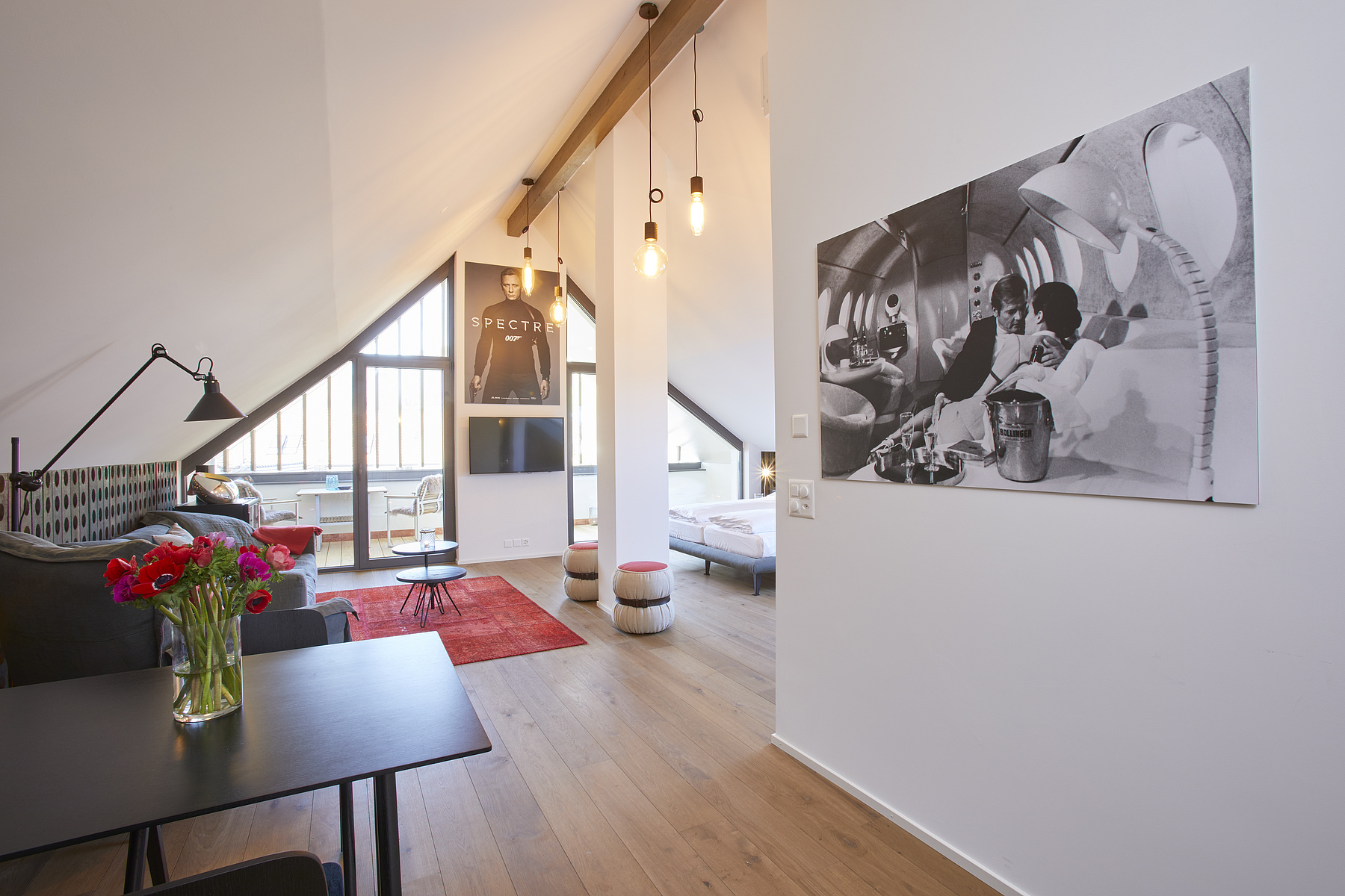 Zwischen der luftig hellen Champagne-Bollinger-Suite unter dem Dach und der Kellersuite im Untergeschoss haben 22 Schweizer Winzer ein Zimmer mit persönlichen Gegenständen ausstaffiert. Im Zimmer von Susi Steiger Wehrli aus Küttigen/AG beispielsweise sind die Wände Eisenerzrot. So wie der Boden des Rebbergs, den man von der Terrasse des Zimmers aus sehen kann. An einer Wand sind sechs Gipshände angeschraubt, jede mit einem anderen Gegenstand in den Fingern, einem Glas Wein, einem Kalkstein, einem Kugelschreiber. Jede dieser Hände ist ein originaler Abdruck eines Wehrlis. «Dieses Zimmer einzurichten, war eine Familiensache», sagte Susi Steiger-Wehrli bei der Eröffnung. Nächtelang hätten sie über Ideen und Entwürfe für das Zimmer gebrütet. «Das verbindet. Ich fühle mich für unser Zimmer verantwortlich», sagte Steiger-Wehrli. «Jetzt bin ich auch ein bisschen Hoteldirektorin und Zimmermädchen.» In jedem Zimmer schläft man zwischen Weinflaschen oder Fässern, Helgen von Rebbergen oder Zapfenzieher-Kollektionen. Oder auch zwischen Unihockey-Schlägern und roten Shorts, die an Nylonfäden neben dem Bett schweben. In den Badezimmern gibt es «Wein-Lein»-Kosmetik wie Body & Hair Shampoo mit Sauvignon Blanc und dessen Passionsfrucht- und Grapefruitduft. Noch hat jedes Zimmer Entwicklungspotenzial, wie Albi von Felten sagt: «Die Winzer sollen wiederkommen und an ihren Zimmern arbeiten, bis diese immer harmonischer wirken, immer abgerundeter. Wie ein guter Wein.» Er kann es kaum erwarten, dass Kratzer am Boden und Weinflecken auf der Wäsche dem Haus eine Patina geben.
