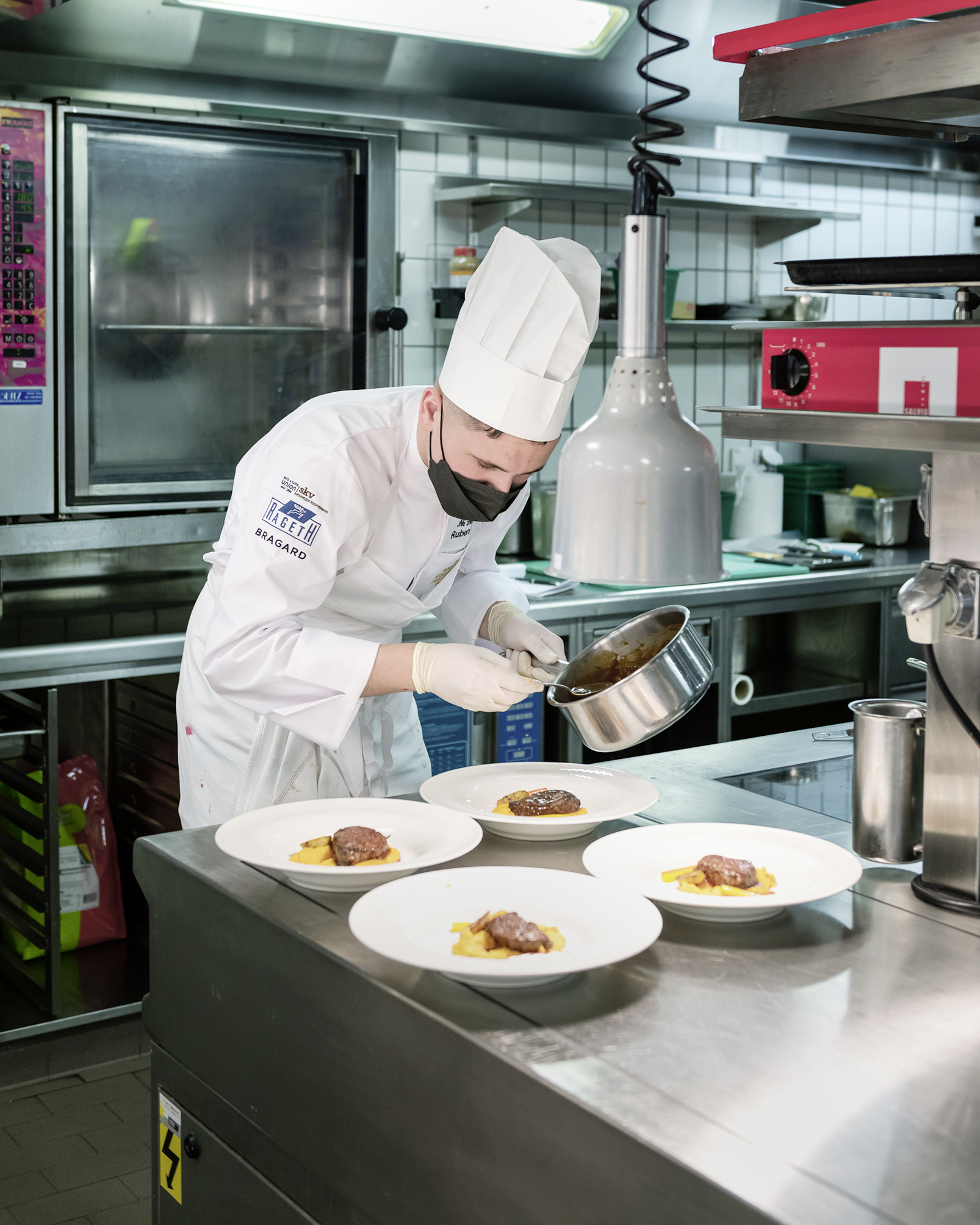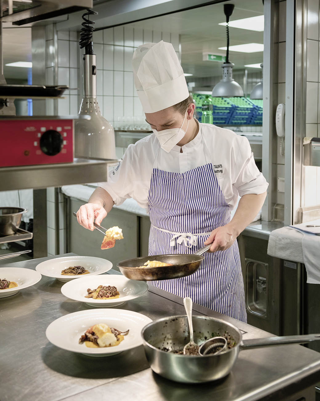 Drei junge Talente kochten um den Sieg: Franca Sofia Obrecht und Ramon Micha Süsstrunk, beide vom «Waldhaus» Sils, und Ruben Paiano vom «Badrutt’s Palace», St. Moritz. Innerhalb von zwei Stunden mussten sie im «Suvretta House» in St. Moritz/GR eine Hauptspeise sowie ein Dessert zubereiten. Für die Zutaten stand ihnen ein vielfältiger Warenkorb zur Verfügung. Beurteilt wurden die Gerichte anschliessend von der hochkarätig besetzten Jury: Fabrizio Zanetti, Executive Chef «Suvretta House» in St. Moritz/GR, Reto Walther, Geschäftsführer Schweizer Kochverband, Dario Cadonau, Direktor In Lain Hotel Cadonau in Brail/GR, sowie Spitzenkoch Roland Jöhri. Seit 2020 wird der Wettbewerb vom Schweizer Kochverband unterstützt. «Es ist mir wichtig, dass die regionalen Wettbewerbe aufrechterhalten werden und Lernende dadurch die Möglichkeit haben, sich zusätzlich für das Qualifikationsverfahren fit zu machen», sagt Reto Walther zum Engagement des Kochverbands. Er zeigte sich nach dem Wettbewerb vom Niveau der Lernenden beeindruckt: «Besonders gefallen hat mir, dass sie bezüglich Zutaten mutig waren und bei den Gerichten nicht auf Nummer sicher gingen.» Die Rangverkündigung findet Ende Januar im Rahmen des St. Moritz Gourmet Festivals statt. Zu gewinnen gibt es unter anderem eine Stage bei einem der Gastköche des diesjährigen Festivals sowie eine Teilnahme an einem Probelauf der Junioren-Kochnationalmannschaft des Kochverbands.