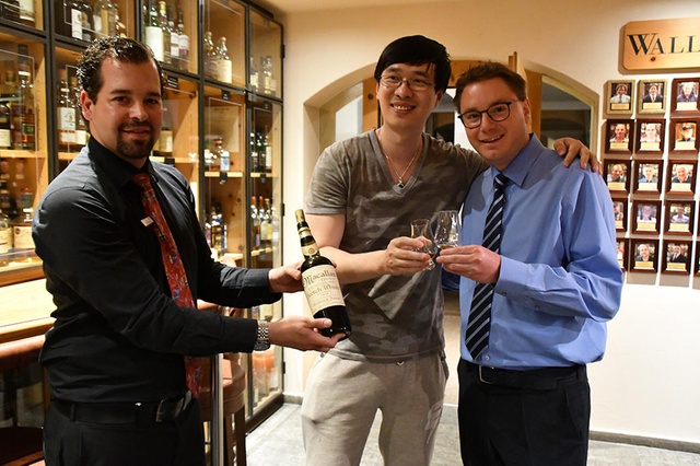 25 Jahre lang stand die teuerste Flasche unberührt im Regal der Whisky Bar des St. Moritzer Hotels, ehe der berühmte chinesische Autor Wei Zhang sich letzten August zwei Centiliter davon gönnte. Für den angeblich 1878 destillierten Macallan zahlte der Mann 9999 Franken.
