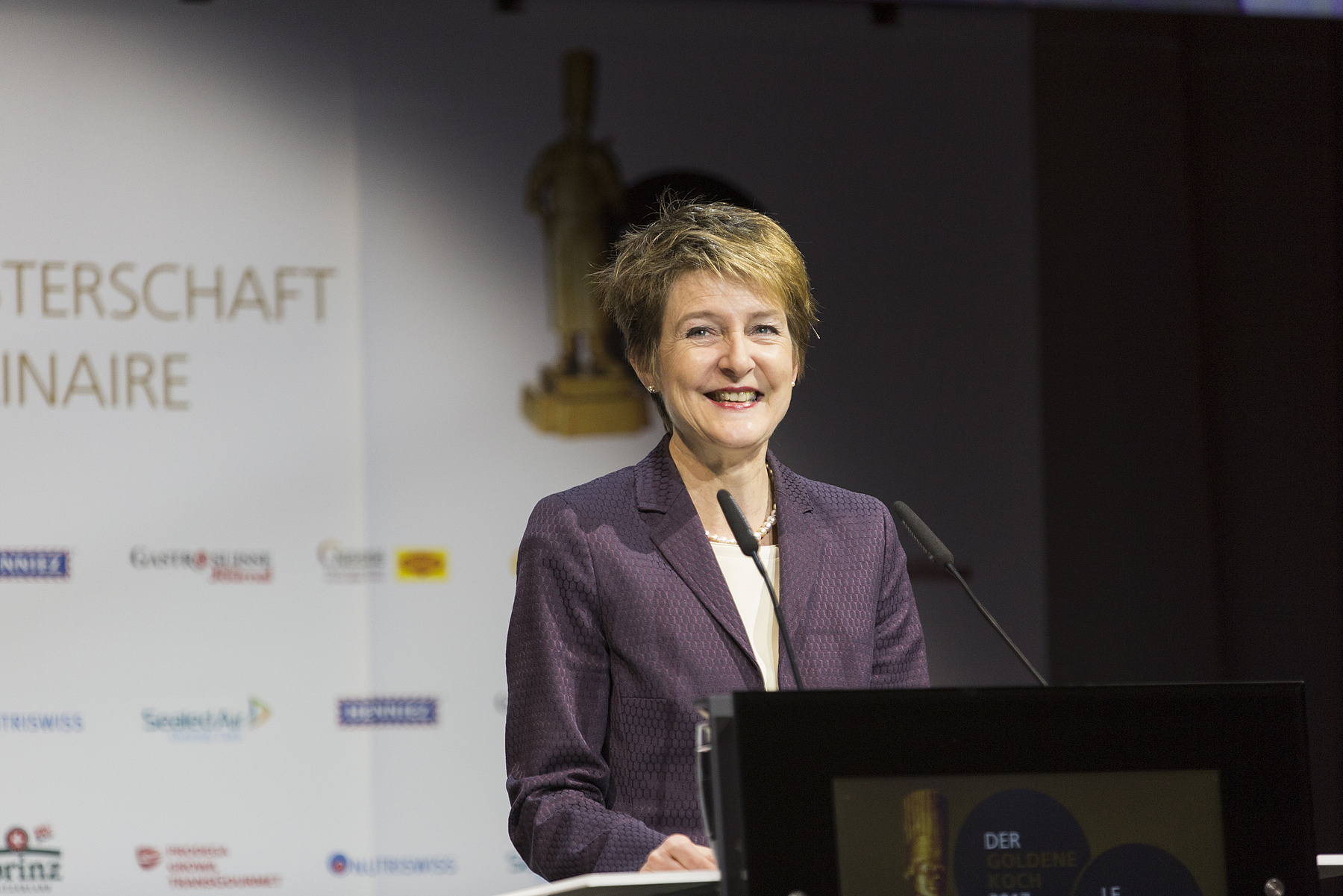 Über 1200 geladene Entscheidungsträger aus der Hotellerie und Gastronomie verfolgten das Live-Kochen mit grosser Spannung. Auch Bundesrätin Simonetta Sommaruga war von den originellen Kreationen der sechs Finalisten beeindruckt. In ihrer Rede unterstrich sie den hohen Stellenwert der Gastronomie für die Schweizer Wirtschaft: «Das ist Wettbewerb, diese Mischung von Handwerk, Übung, Ausdauer, Kreativität und dann noch das Quäntchen Glück, das es braucht, damit in genau dem Moment alles gelingt.» Dann fügte sie an: «In der Politik ist das übrigens auch ein bisschen so.»