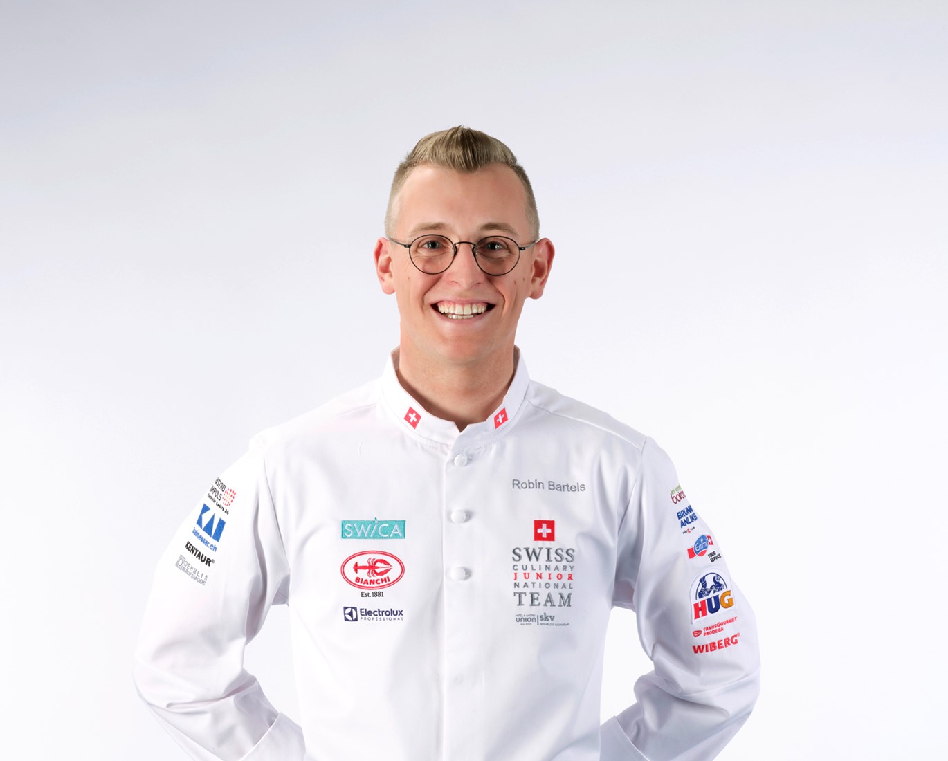 Robin Bartels ist gebürtiger Muttenzer, der seine Kochlehrjahre in den vier Restaurants der Brüderli Gastronomie in Baselland, darunter das «Pantheon» in Muttenz, verbrachte. Als Ausgelernter arbeitete er zunächst temporär und verbrachte die Wintersaison 2017/18 in einem Ski-Resort in der Nähe von Vancouver in Kanada. Im Sommer 2018 trat er die Rekrutenschule in der Kaserne von Moudon/VD an und wechselte im Herbst desselben Jahres in die Kaserne Thun, wo er als Küchenchef die Unteroffiziersschule besuchte. «Zurück in Moudon habe ich mir dann den Küchenchef abverdient», erzählt Robin Bartels. Im April 2019 kam er als Durchdiener nach Kirchberg/BE, wo Ausbildner Peter Boo auf das junge Kochtalent aufmerksam wurde. Peter Boo war es auch, der Robin Bartels dem Schweizer Kochverband und Teammanager Tobias Ciarulli für die neue Schweizer Junioren-Kochnati empfahl.