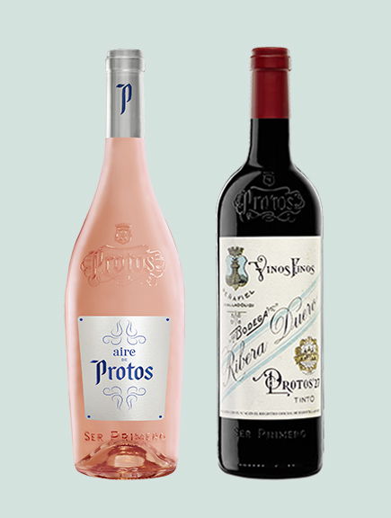 In der nordspanischen Weinbauregion D. O. Ribera del Duero verarbeitet Protos die Ernte von 1600 Hektaren Rebfläche. Diese liegt auf 750 bis 900 Meter über Meer. Die Hälfte davon befindet sich im Besitzt der Bodega. Kar-ge Böden und ein – abgesehen von sommerlichen Hitzetagen – eher kühles Klima sorgen für frische, fruchtbetonte Weine. Ein Beispiel ist der Rosé Aire de Protos. Sie-ben verschiedene weisse und rote Trauben machen ihn zum fruchtigen, eleganten und balancierten Sommerwein.