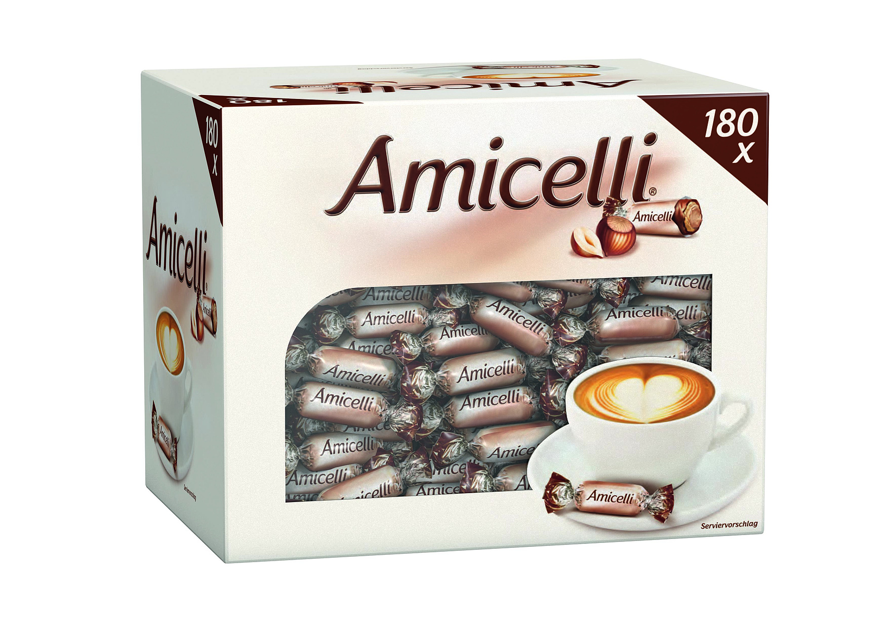 Zahlreich sind die Variationen. Doch jeder kennt und liebt Amicelli, die knusprigen, von zartschmelzender Schokolade umhüllten Waffelröllchen mit der feinen Haselnusscreme-Füllung. Weil Amicelli so wunderbar zum Kaffee passen, gibt es diese neu im Miniaturformat in der praktischen Catering Box. Gastgeber, die ein kleines Amicelli zum Kaffee servieren, machen ihre Gäste glücklich.