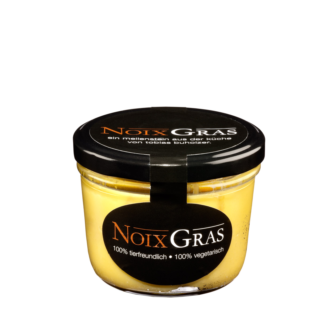 testeten Nüsse.» Hinzu kamen allmählich Butter und Kakaobutter für die fettige Textur und als Geschmacksträger, Pinienkerne, Schweizer Eier aus Freilandhaltung, Wasser, Weisswein, Zwiebel, Cognac, Marsala, Portwein, Salz, Gewürze, Knoblauch und Périgord-Trüffel. Nach Jahren der Tüftelei und des Herantastens war die vegetarische Foie gras fertig. Der Name: Noix gras. Klingt wie Foie gras, doch noix steht auf Französisch für Nuss. «Ich dachte bei der Namensgebung auch an ‹Faux gras›, das klingt auch ähnlich wie Foie gras. Aber faux heisst falsch, und das war mir zu negativ, zumal die fair produzierte Variante sicher nicht falsch ist.»