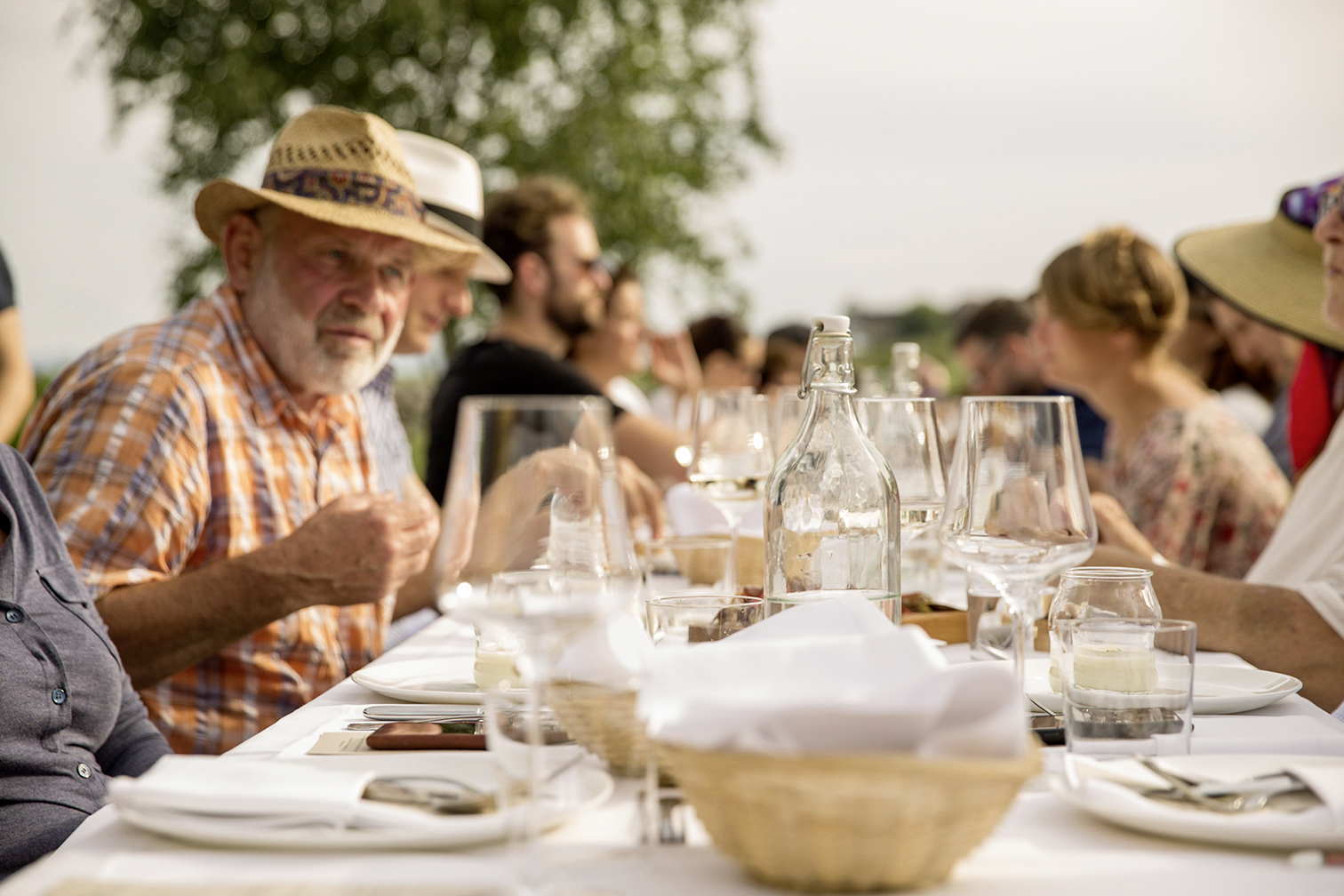 Die hochstehende Nachmittagssonne zeigt ihr schönstes Gesicht. Sie lässt die lange, weiss gedeckte Tafel strahlen, als wäre sie stolz auf ihren Platz mitten im blühenden Grün. Die Stimmung unter den rund vierzig Gästen ist lebhaft, umso erstaunlicher, wenn man bedenkt, dass sich die meisten gar nicht kennen.