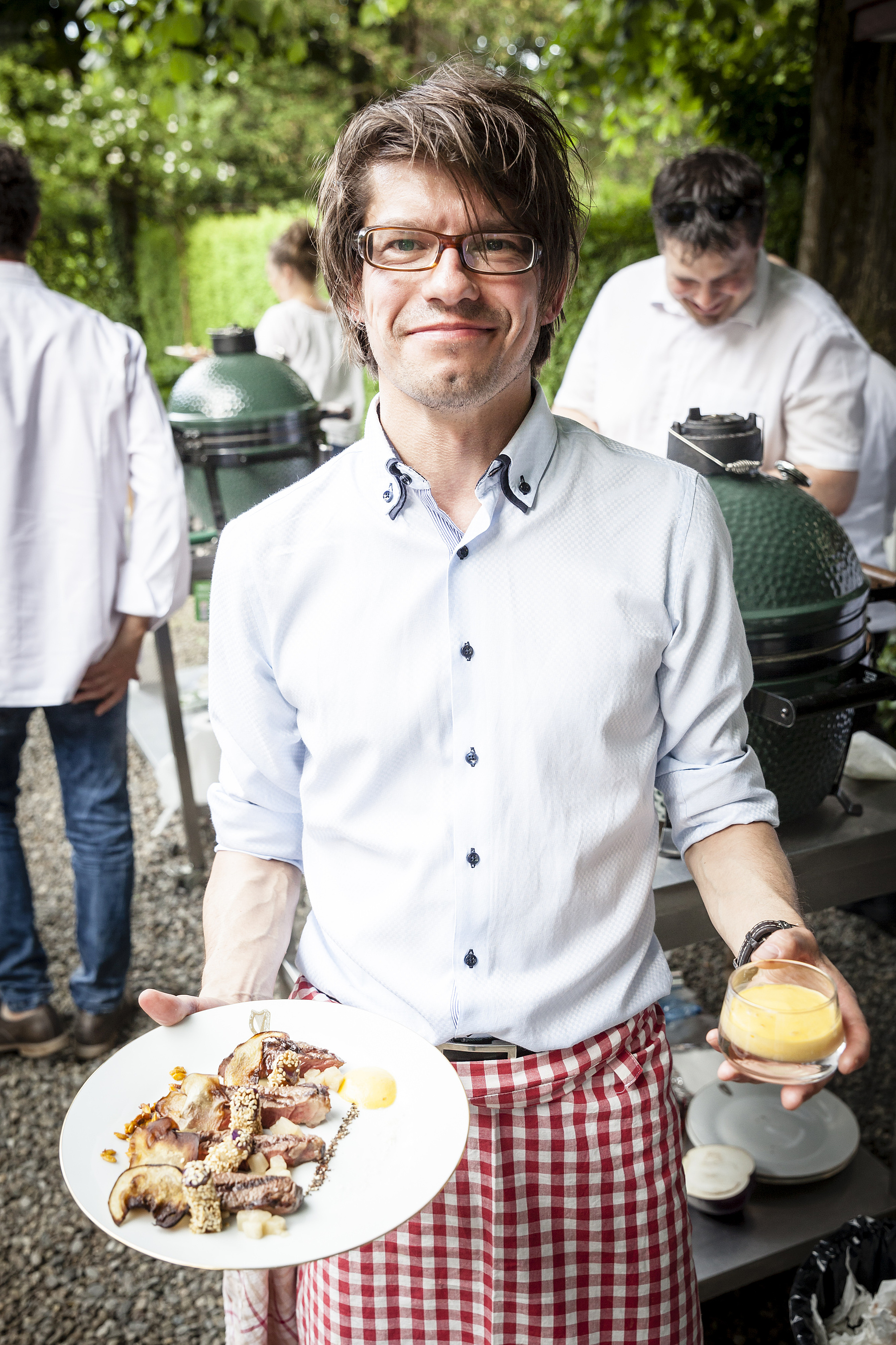 Im Garten der irischen Botschaft in Bern riecht es nach feinsten grillierten irischen Rib-Eye-Steaks von grasgefütterten Weiderindern: Es ist Irish Beef Blogger Contest. Das zarte Fleisch wird zwischen Rotzedernholz oder auf Kaffeebohnen grilliert, dazu werden Mostbröckli aus Rinderherz serviert. Für die zweite Ausgabe des von der halbstaatlichen irischen Lebensmittelagentur Bord Bia initiierten Wettbewerbs hatten sich Schweizer Food-blogger einiges einfallen lassen. Eine Stunde hatten sie Zeit, um ihr Rib-Eye-Steak mit Beilagen in einem Big Green Egg Grill zuzubereiten. Das sah bei einigen gemütlicher, bei anderen stressiger aus – die letzten Minuten des Anrichtens produzierten aber bei allen Finalisten Schweissperlen auf der Stirn.