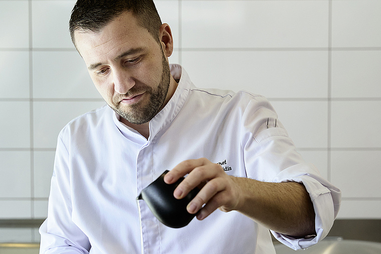 Der 35-jährige Grieche versucht, in seinen Gerichten regionale Zutaten mit den Aromen seiner Heimat zu verbinden. Seine Eltern hätten ihm die Leidenschaft für das Kochen beigebracht. An Ostern besorgt der Vater das Fleisch bei lokalen Bauern, während die Mutter traditionelle Beilagen dazu zubereitet. In seinem Gericht verarbeitet der Küchenchef acht verschiedene Kräuter. «Dass ich als Koch so kreativ sein kann, schätze ich enorm. Ausserdem biete ich meinen Gästen gerne ein Erlebnis und freue mich, wenn sie eine schöne Erinnerung daran mitnehmen. Etwas, an das sie noch lange und gerne denken.»