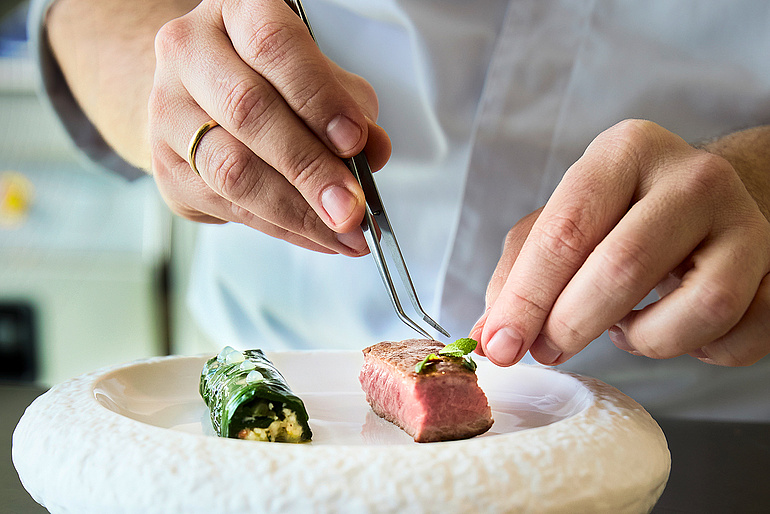 Nicht ohne Stolz sagt der Küchenchef: «In meinem Team arbeiten 24 Mitarbeitende aus elf Nationen.» Diese kulturelle Vielfalt sei die grosse Stärke seiner Mitarbeitenden. In seinem Team lege er Wert auf Wertschätzung und Würde. Die Brigade inspiriere sich gegenseitig. «Ich geniesse diesen Austausch, jedes Teammitglied hat einen anderen Hintergrund, was für alle spannend ist.» Grundsätzlich sei die Sprache in der Küche englisch, die Verständigung funktioniere auch in anderen Sprachen. «Wir lernen nicht nur Fachliches voneinander, sondern lernen sogar neue Sprachen dazu.»