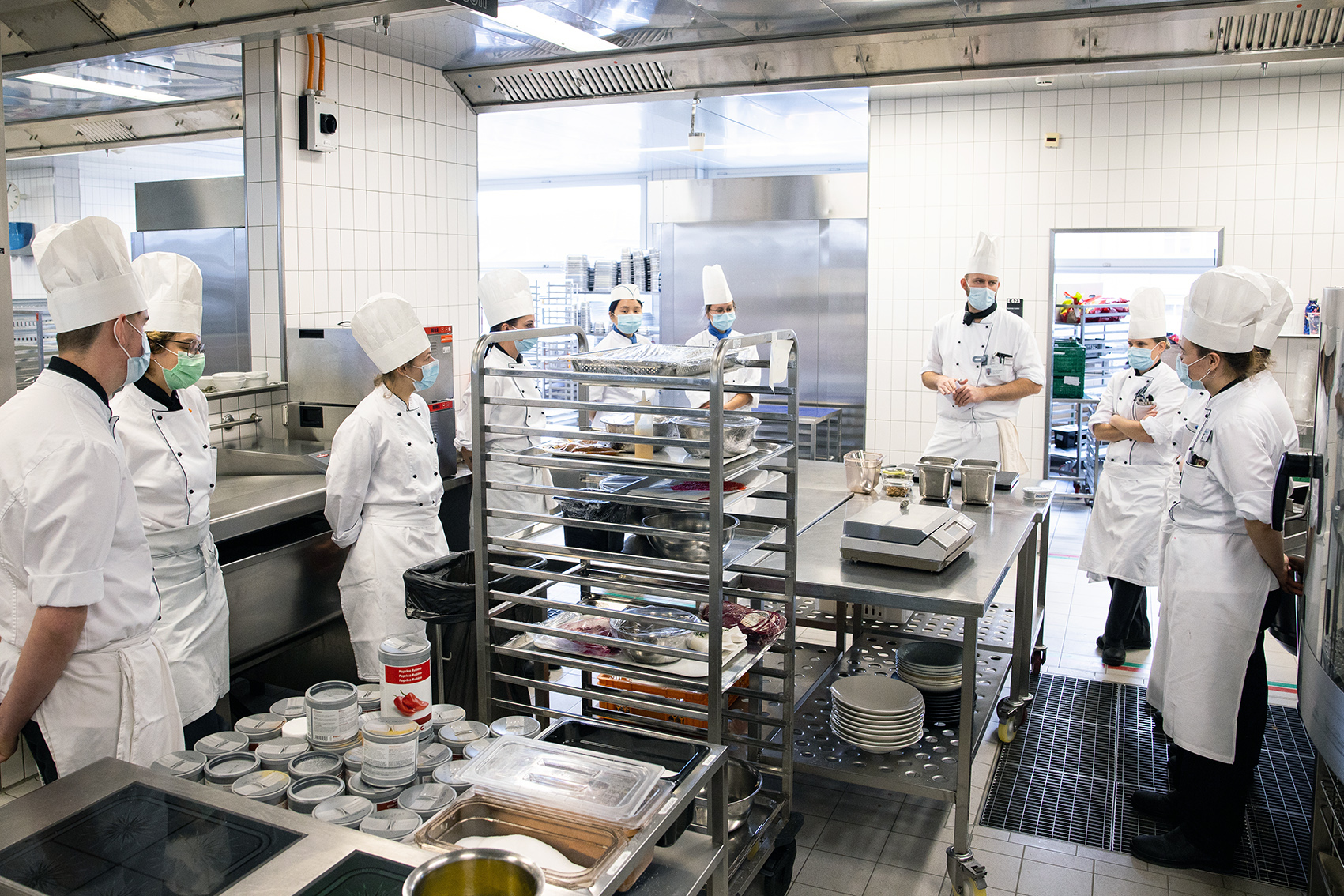 In den Grossküchen der Berner Insel-Gruppe arbeiten die Lernenden oft an einzelnen Komponenten. Mit einem Wettbewerb, der zur Ausbildung gehört, kreieren und berechnen sie ihr eigenes Menü.