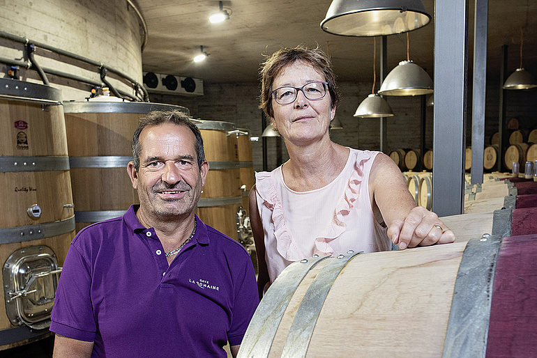 Joël Briguet und seine Frau Ruth Germanier führen die Cave la Romaine in Flanthey/VS, das aktuelle Weingut des Jahres. (Weinweltfoto)