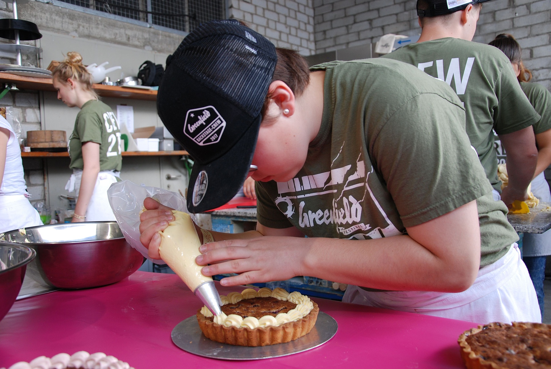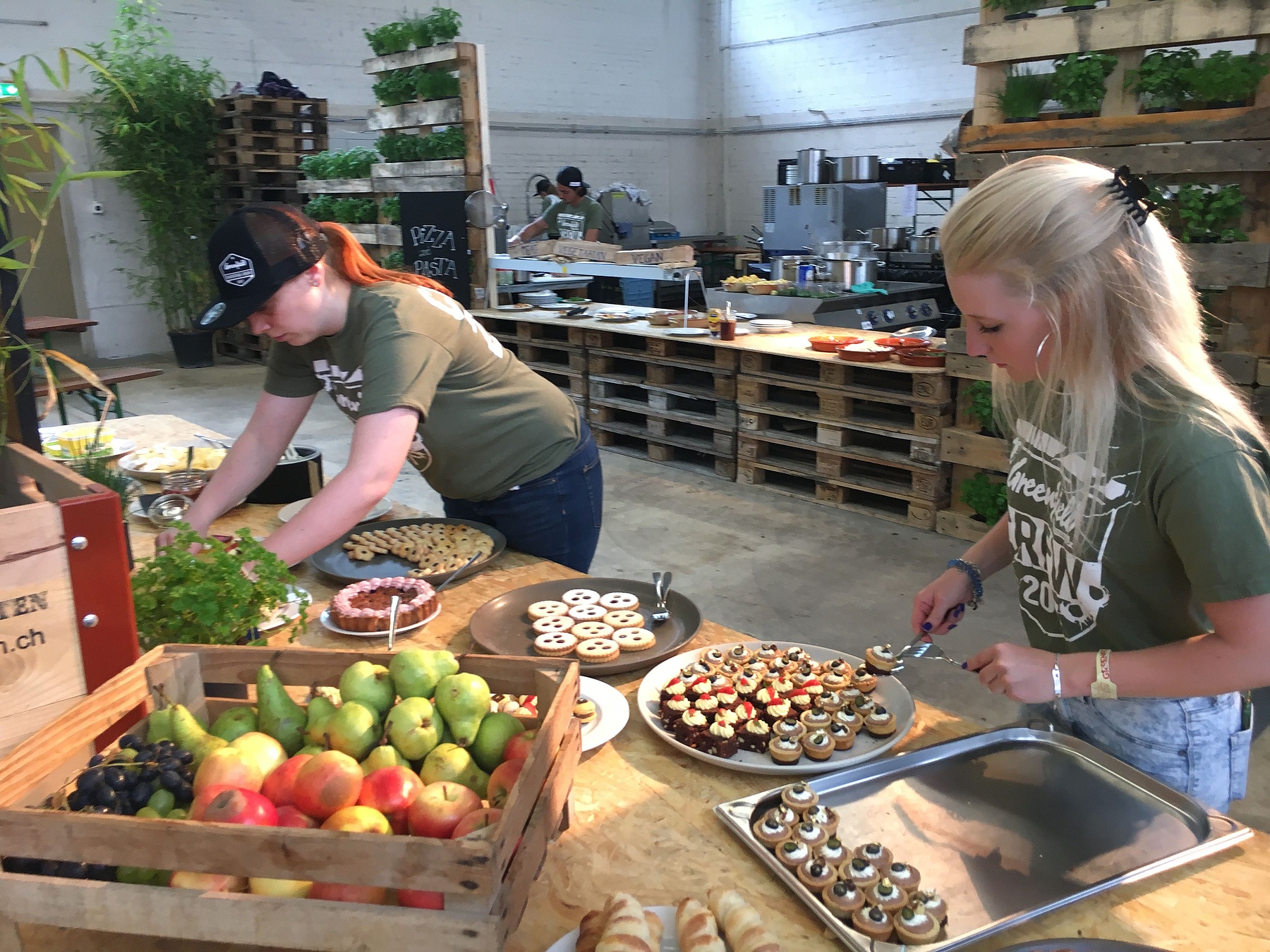 Man wähnte sich in einem Gourmet-Lokal, nicht an einem Punk-Festival im Berner Oberland. Im Zentrum des Verpflegungsbereichs bot sich den Musikern eine Auswahl an frisch gebackenen Broten, Käse, Müesli und eine beachtliche Vielfalt an Dessertgebäck, vom Vogelnest bis zur Apfel-Heidelbeer-Wähe. Kaum zu fassen, was die Jungbäcker und -konditoren aus dieser improvisierten Backstube hervorbrachten.