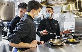 Die beiden jüngsten Teilnehmenden an der Task-Force-Runde, Laura Loosli, Drittjahr-Kochlernende, und Jacob Schümperli, Zweitjahr-Restaurantfachlernender, stimmen ihm zu. Für beide ist das Arbeitsklima im Betrieb sowie die Art und Weise, wie sie von ihren Ausbildnern gefördert werden, enorm wichtig. «Mein Chef ist Rolf Fuchs. Es macht einfach Spass, bei ihm zu arbeiten, und es ist super, wie er mich unterstützt», sagt die «Gusto 19»-Gewinnerin. Wegen des familiären Umgangs fühlt sie sich extrem mit dem Betrieb verbunden. Emotional nicht ganz so eng mit seinem Arbeitgeber, der Swiss Re, verknüpft, ist Jacob Schümperli. Doch auch der Junior-Servicemeister 2020 weiss es sehr zu schätzen, wie engagiert der Arbeitgeber ihn ausbildet und fördert. Er ist überzeugt: «Schaffen es Lehrbetriebe, den Lernenden drei Jahre lang eine interessante Ausbildung zu geben und Perspektiven zu eröffnen, bleiben diese in der Branche.» Er gibt aber auch zu: «Meine Generation ist verwöhnt. Wenn es uns nicht passt, müssen wir nicht bleiben. Wir haben so viele Optionen und sind bereit, sie auszuprobieren.»