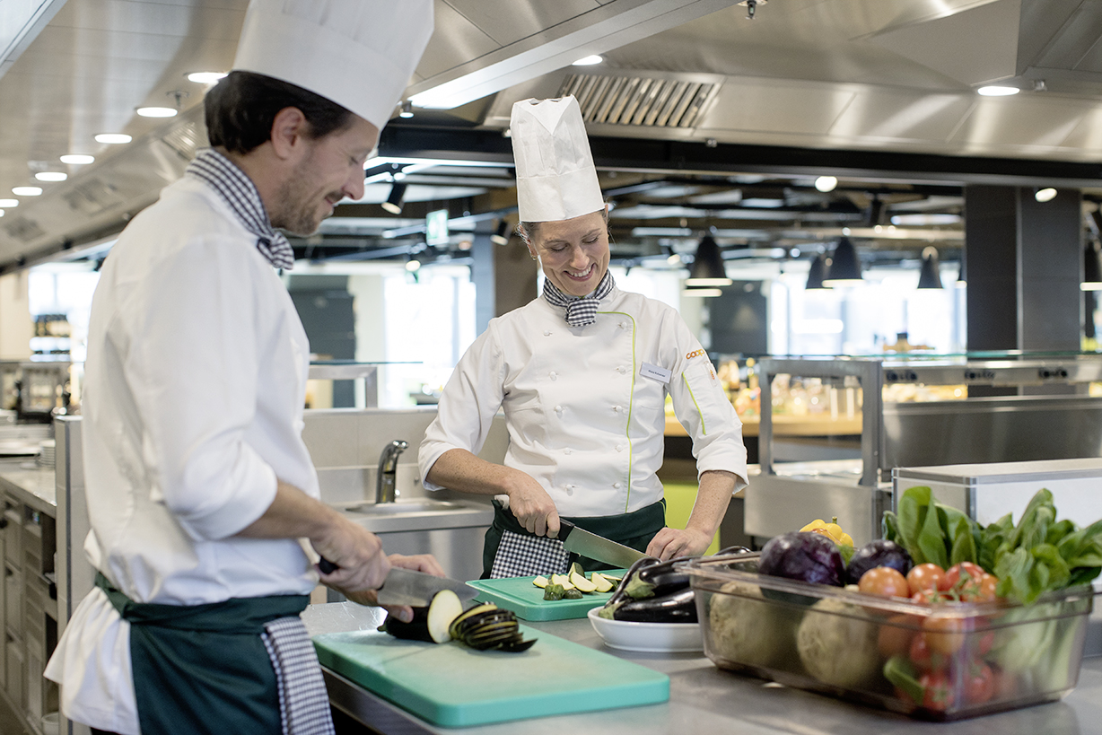 In der Coop-Gastronomie wird eine innovative Systemgastronomie gelebt, die den Mitarbeitenden in der Küche viel Raum für eigene Kreationen mit frischen Zutaten lässt. Wo immer möglich werden saisonale, biologisch und nachhaltig produzierte Produkte eingesetzt. «Unsere Mitarbeiterinnen und Mitarbeiter sind auch bei allen aktuellen Projekten involviert wie zum Beispiel bei dem zur Verhinderung von Food Waste. Ergänzend bieten wir eine Vielzahl von spannenden internen Weiterbildungen an», betont Martin Wasserfallen.
