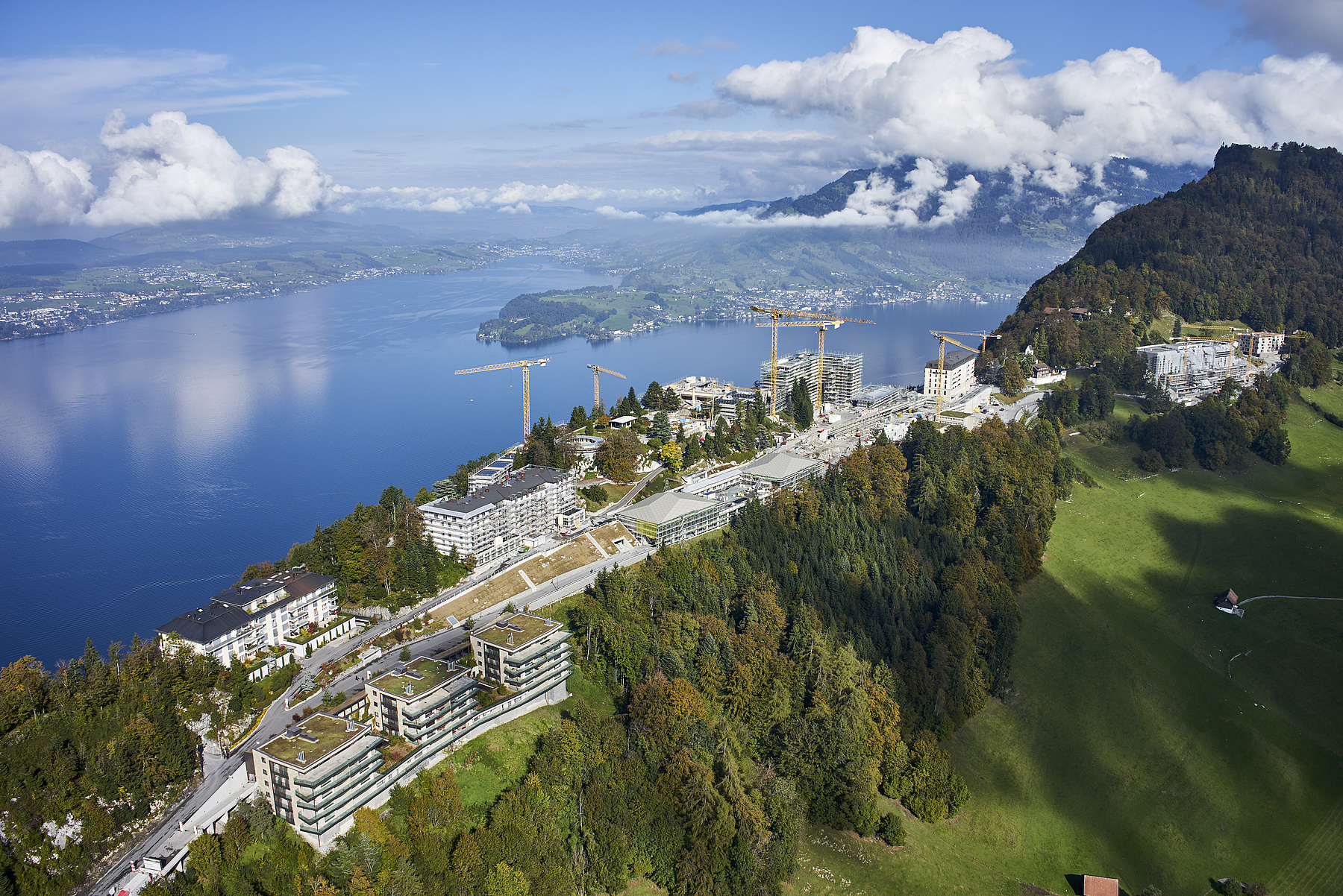 Noch ist das «Bürgenstock Resort Lake Lucerne» eine grosse Baustelle. Kräne ragen in den Himmel. Lastwagen mit Baumaterial schlängeln sich die Strasse nach Stansstad hinunter. Lieferwagen mit Einrichtungsgegenständen und Möbeln kurven auf den Bürgenstock herauf. Bauzäune sichern das Areal und Handwerker bringen ihre Arbeiten zum Abschluss. Am einen Ende des Resorts wird noch gehämmert und gebohrt, am anderen geputzt und eingerichtet.